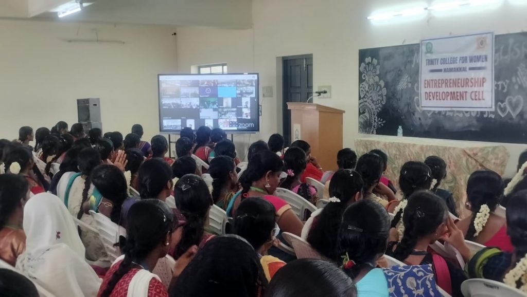 Mrs. G. Nithya, Coordinator of Entrepreneurship Development Cell/Assistant Professor in Commerce, Trinity College for Women, Namakkal and also more than 200 students of our College actively took part in that online Programme.