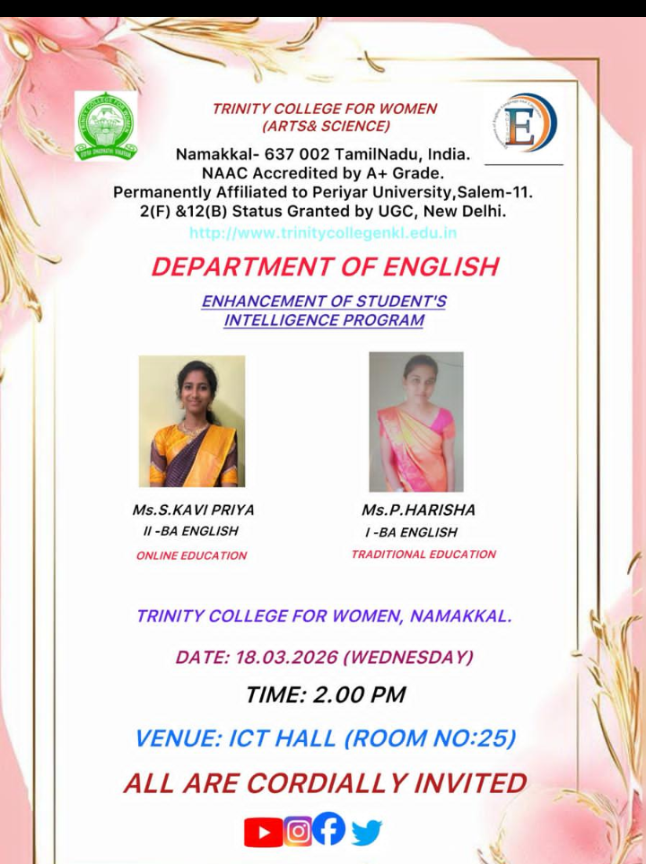 Second Year B.A., English, Trinity College for Women, Namakkal |