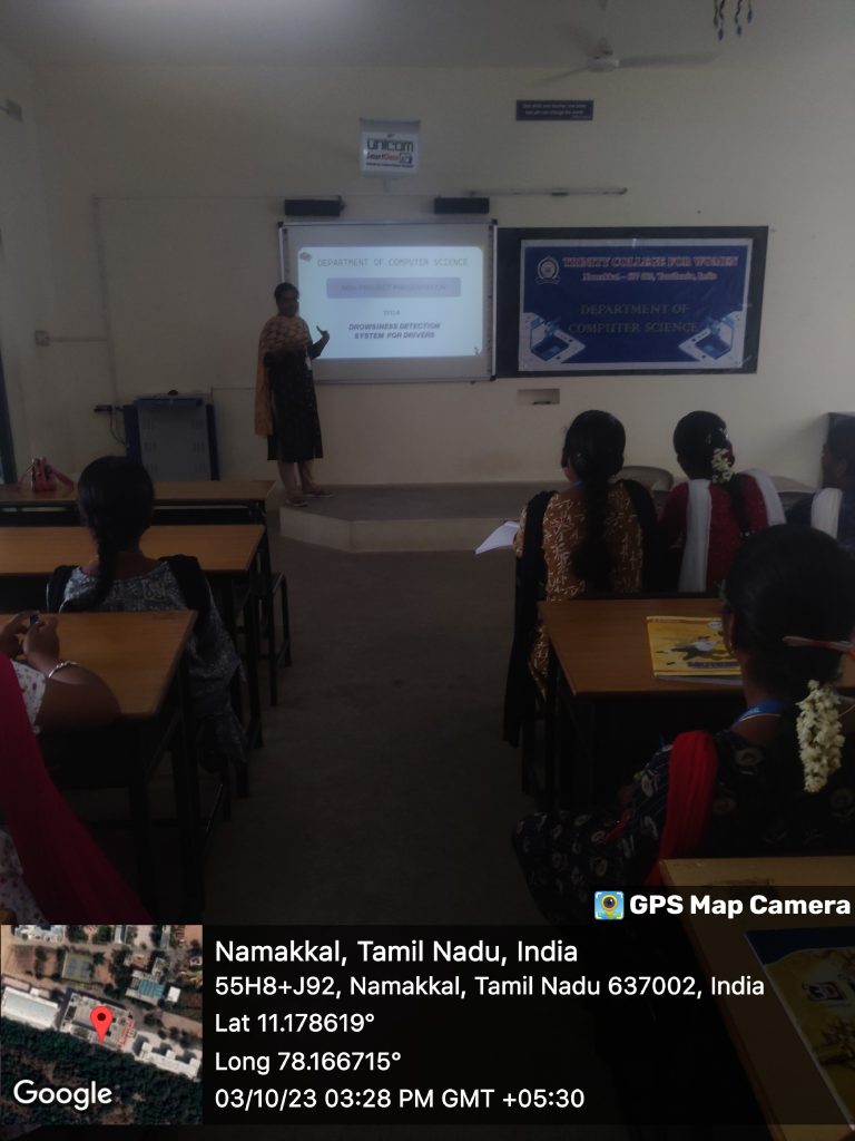 | 07 | 03.10.2023 | Computer Science | Drowsiness detection system for drivers | Ms. M. Kiruthika,II M.Sc., Comp. Sci.,Trinity College for Women, Namakkal |