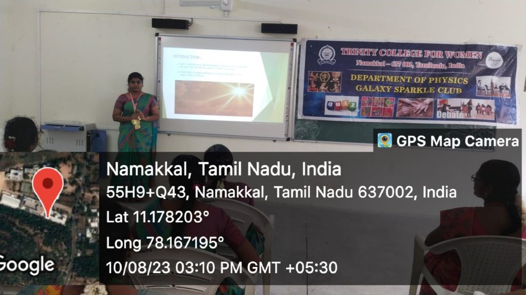 | 02 | 10.08.23 | Physics | Propagation of Light | Ms. M. SanthiyaII M.Sc., Physics, Trinity College for women, Namakkal |