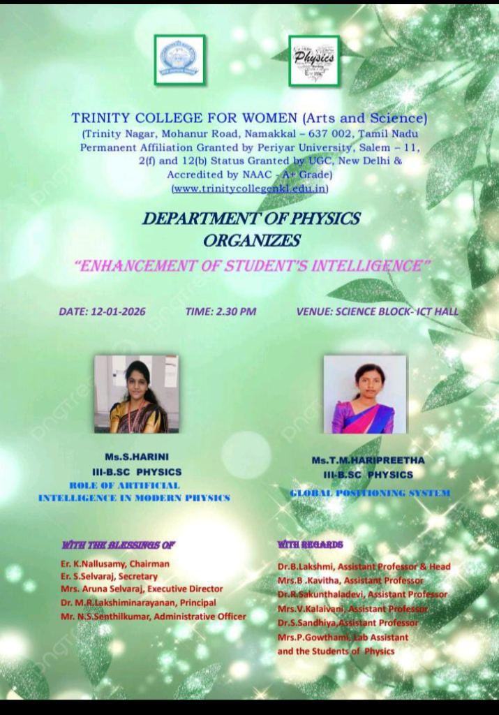 0112.01.26PhysicsRole of Artificial Intelligence in Modern PhysicsMs. S. Harini,  Final Year B.Sc., Physics, Trinity College for Women, Namakkal