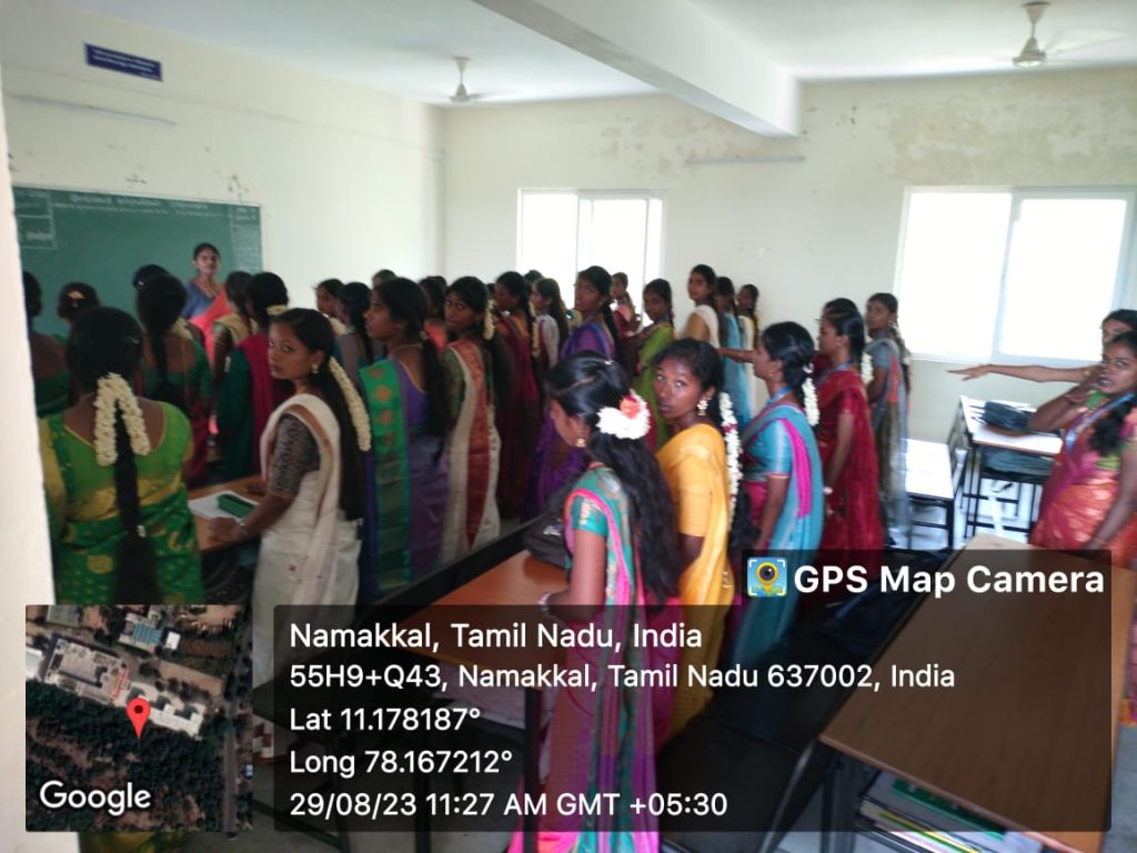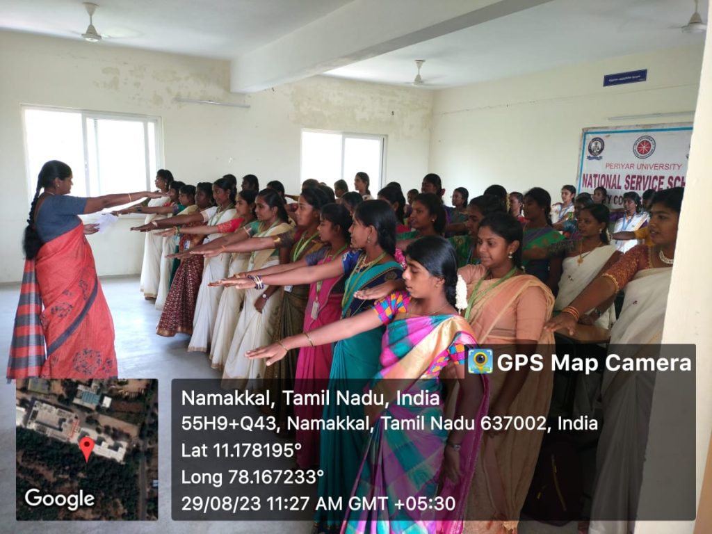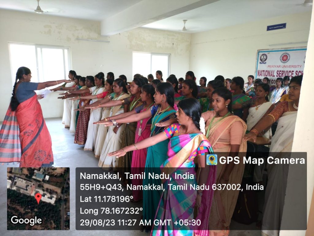 The 29th August 2023, which day is celebrated to honour the legendary hockey player Dhyan Chand Singh, our students pledge to strengthen the Fit India Movement. The volunteers of the National Service Scheme, Trinity College for Women, Namakkal took a pledge to lead a healthy life and make themselves. Also, they paid tribute to legendary hockey player Major Dhyan Chand Singh. Dr. M. Sasikala & Mrs. S. Jayamathi, NSS Programme Officers made arrangements.