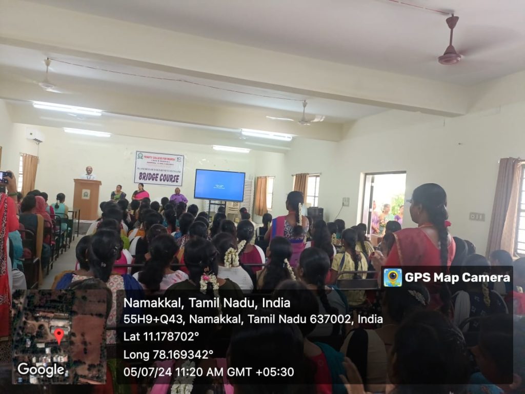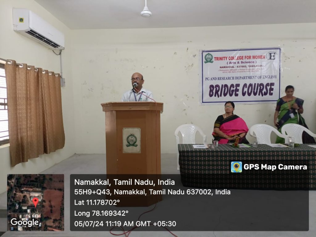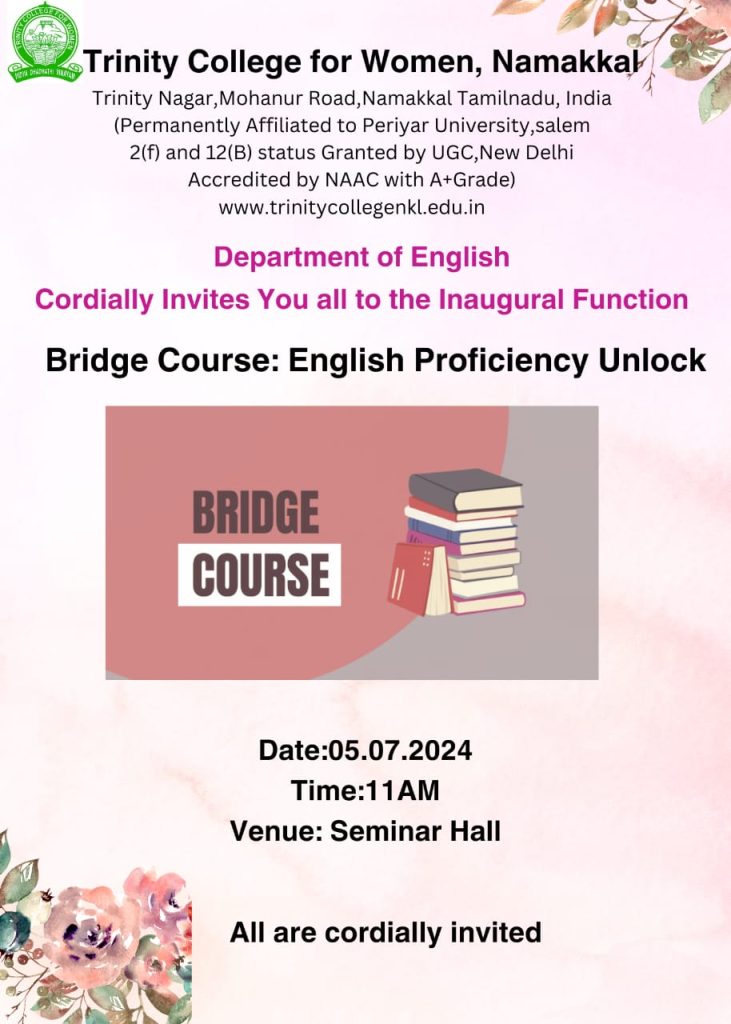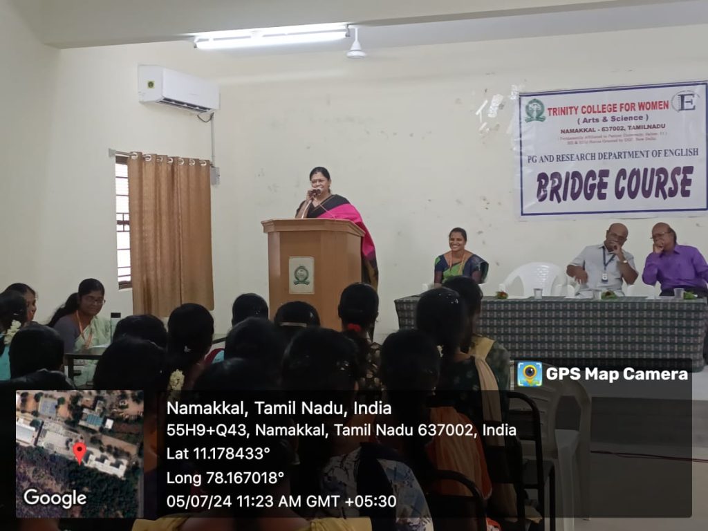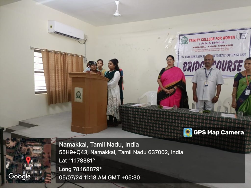 For the academic year 2024-2025, the department of English, Trinity College for Women (Arts and Science), Namakkal conducted a one-week English Bridge Course from 05th July 2024 to 12th July 2024.