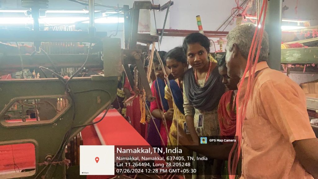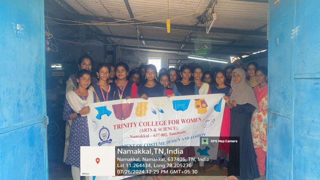 Besides that, they have seen the powerloom weaving unit at Marurpatti in Namakkal. This industry is owned by Mr. M. Thangarasu, father of Ms. T. Monika (a former CDF student in the batch of 2020-2023 and also a third rank holder at Trinity College for Women, Namakkal). She warmly invited all the faculty members as well as her juniors. She elucidated the production of bedsheets and towels through their industry’s powerloom.