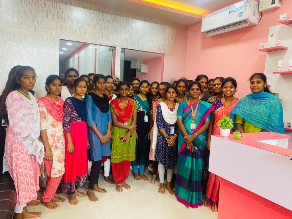 Mrs. M. Jayasudha, Director of the Company, has happily invited all. She explained the various parlor activities, such as parlor management, how to do bleaching, facials, threading, hair cutting, hair coloring and styling, waxing, tips for glowing skin, pedicures and manicures, bridal and party makeup demonstrations, equipment used in parlors, and their uses.