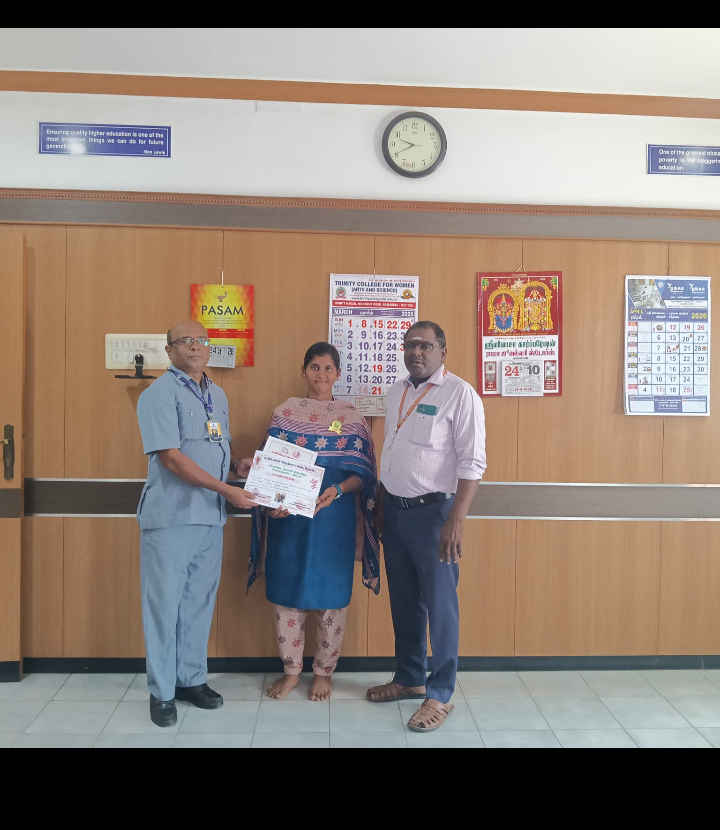 Owing to International Women’s Day, this programme was conducted. In this regard, Ms. A. Shalini, a second-year student of B.Sc. Computer Science, Trinity College for Women, Namakkal, obtained second position in the elocution competition titled “An Egalitarian Society – Is it a Dream?” (சமத்துவ சமுதாயம் ஒரு கனவா?).