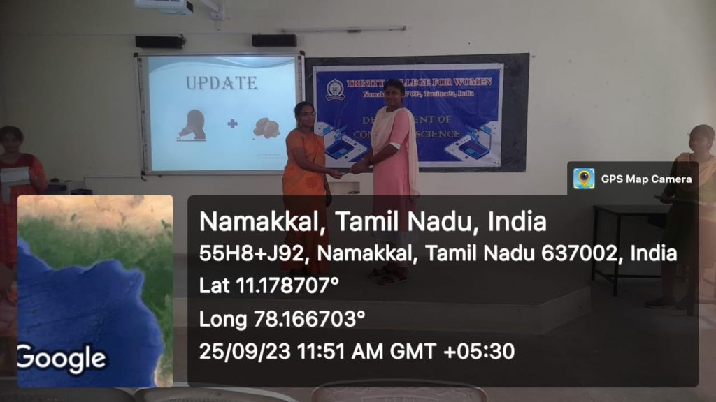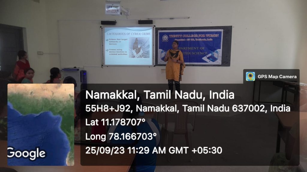 | 02 | 25.09.2023 | Computer Applications | Cyber Security and Cyber crime | Ms. N. Shobana Shree, I BCA &Ms. R. Keerthana,I B.Sc., CS – Artificial Intelligence and Data Science,Trinity College for Women, Namakkal |
