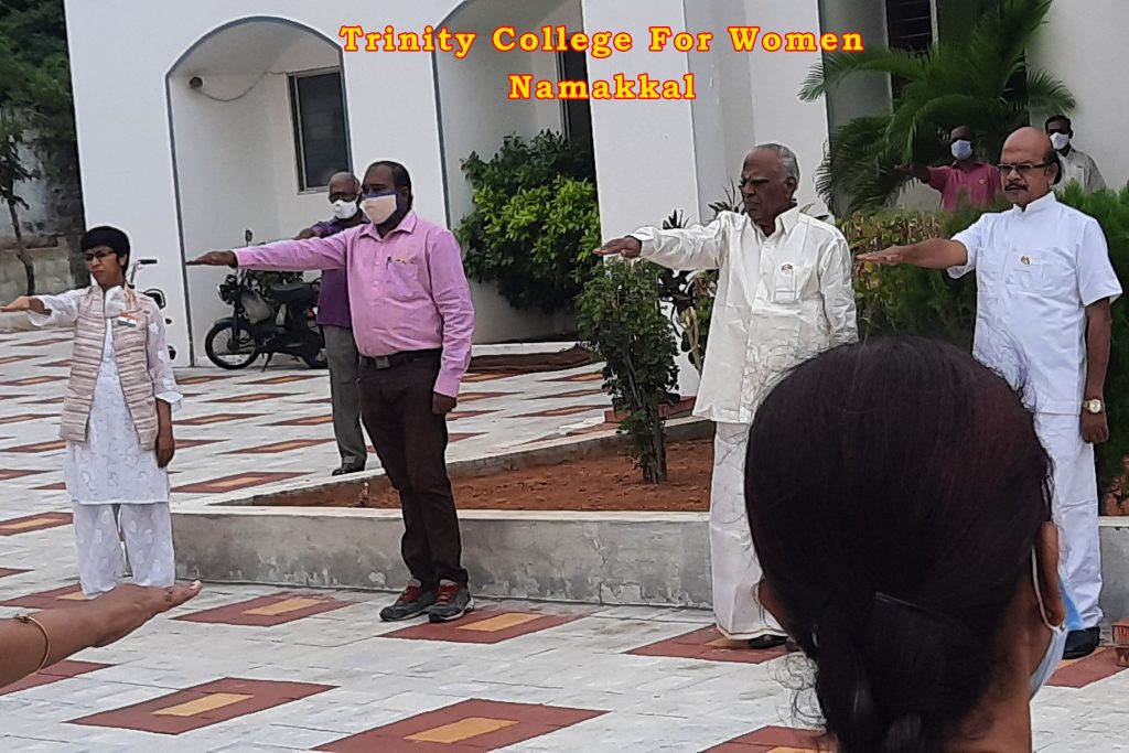 74TH Independence Day was celebrated on 15.8.2020 at 8.40 AM in our College campus. This Independence Day event was held with mandatory adherence to social distancing norms. Er. K. Nallusamy, Secretary of Trinity College for Women has hoisted the tri-color national flag. While addressing Independence Day, he paid tributes to our freedom fighters and the armed forces for protecting our nation. Mr. P.K. Sengodan, Chairman of Trinity College for Women presided over the celebrations of Independence Day. He delivered highly motivating talk and commemorated the long and consistent efforts put in by the Indian freedom fighters for our country. Dr. R. Kulandaivel, Founder and Chief Doctor, Thangam Hospital and Cancer Centre, 54, Dr Sankaran Road, Near BSNL Office, KK Nagar, Namakkal was the special invitee of that Independence Day Celebrations.
