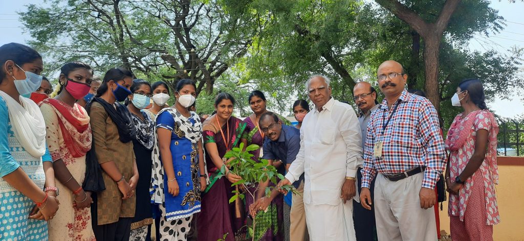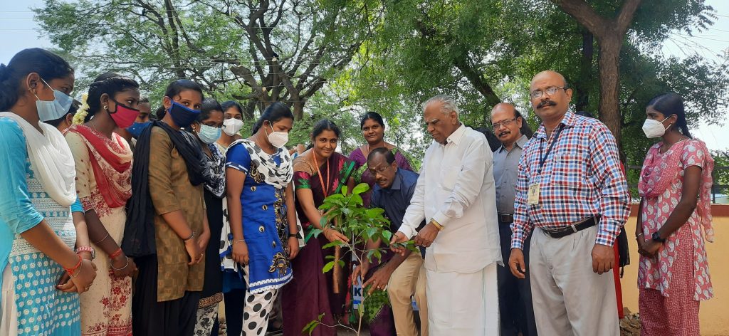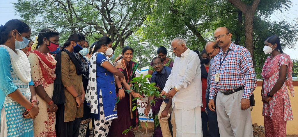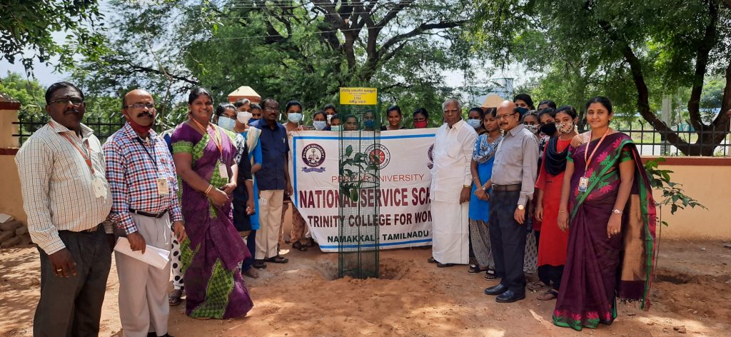 In accordance with the celebration of 75th year of Indian Independence Day and NSS (National Service Scheme) Day, The NSS wing of our Trinity College for Women, Namakkal, Tamil Nadu state organized a tree saplings event on 24th September 2021@ 10.30 AM. Mr. P.K. Sengodan, Managing Director, PSK Group of Companies, Namakkal was the special invitee. Er. K. Nallusamy, Secretary and Dr. M.R. Lakshiminarayanan, Principal of the College delivered their felicitation address. Dr. M. Sasikala, NSS Programme Officer welcomed the gathering. Dr. Arasuparameswaran, Director – Academic of the College spoke on the topic of “Let’s plant a tree, let’s get rain (மரம் நடுவோம் – மழை பெறுவோம்). He highlighted the significance of tree plantation for the benefit of our society. Mrs. S. Jayamathi, NSS Programme Officer, Unit 2 of the College proposed the vote of thanks. Mr. N.S. Senthilkumar, Administrative Officer and the volunteers of NSS took part in that occasion. Bullet wood (மகிழ மரம்), Neem Tree (வேப்ப மரம்) and Banyan Tree (ஆலமரம்) were planted in that tree plantation event. Geotagging procedure of new sapling was followed in that occurence. The location geo tagging plant image has been uploaded in the NSS Email.