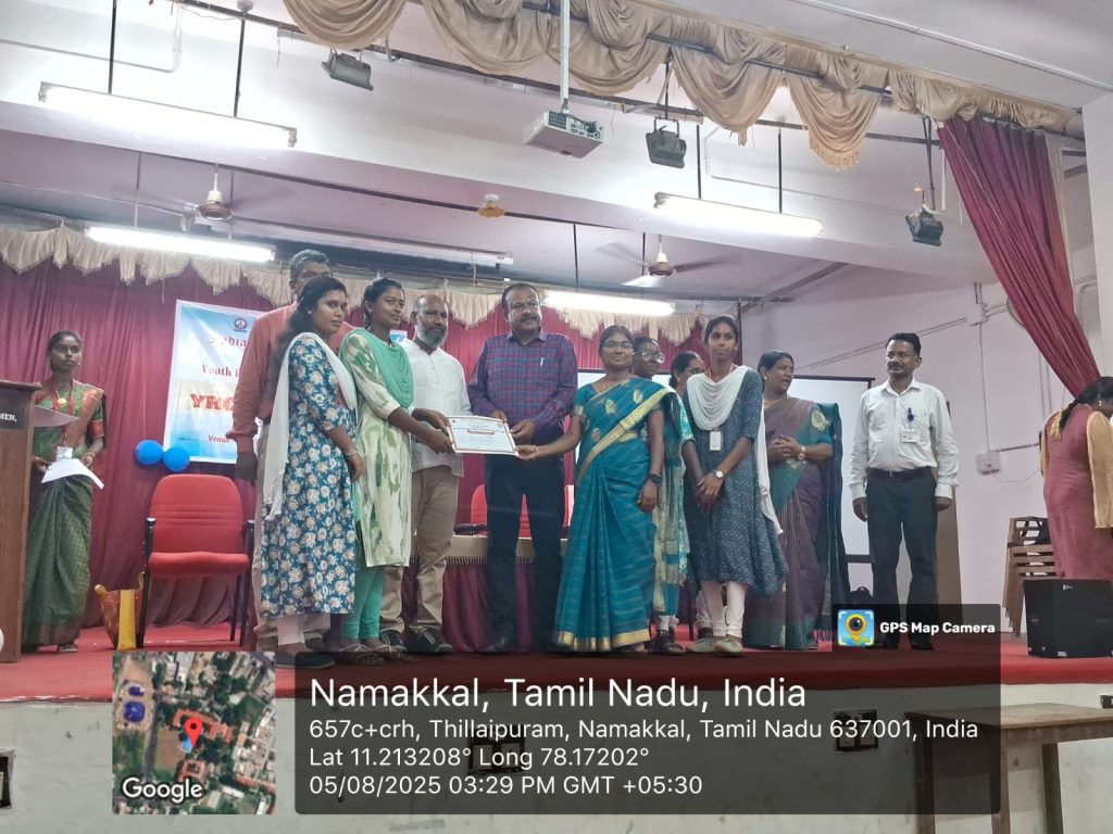 On behalf of Trinity College for Women, Namakkal, Mrs. V. Kalaivani, Assistant Professor in Physics & YRC Programme Officer along with the students of final year B.Sc., Physics, Ms. K. Heaviya, Ms. T. Pradhiksha, Ms. D. Ragavi and Ms. P. Sowmithaa took part and got the appreciation certificates from the chief guests.