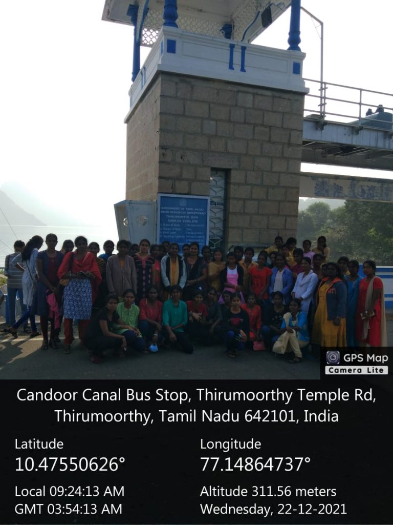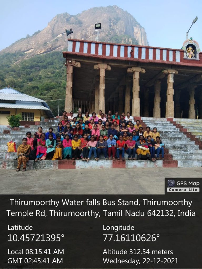| 06 | 22.12.21 | Physics | Udumalpet, Pollachi & Coimbatore –Thirumoorthy Dam, Monkey Falls, Aliyar Dam, Anaimalai-Masaniamman Temple, Esha Yoga & Brooke Field Mall | The faculty members of PhysicsDr. B. LakshmiMrs. R. Sakunthaladevi,Dr. R. PoonguzhaliDr. R. Sathiyapriya | II B.Sc., Physics, III B.Sc., Physics, I M.Sc., Physics and II M.Sc., Physics |