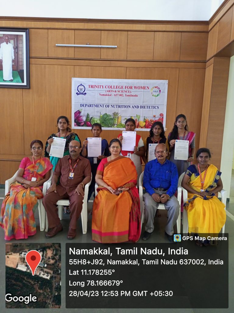 On this subject, a felicitation function was held on 28.04.2023 in the Campus of Trinity College for Women, Namakkal.
