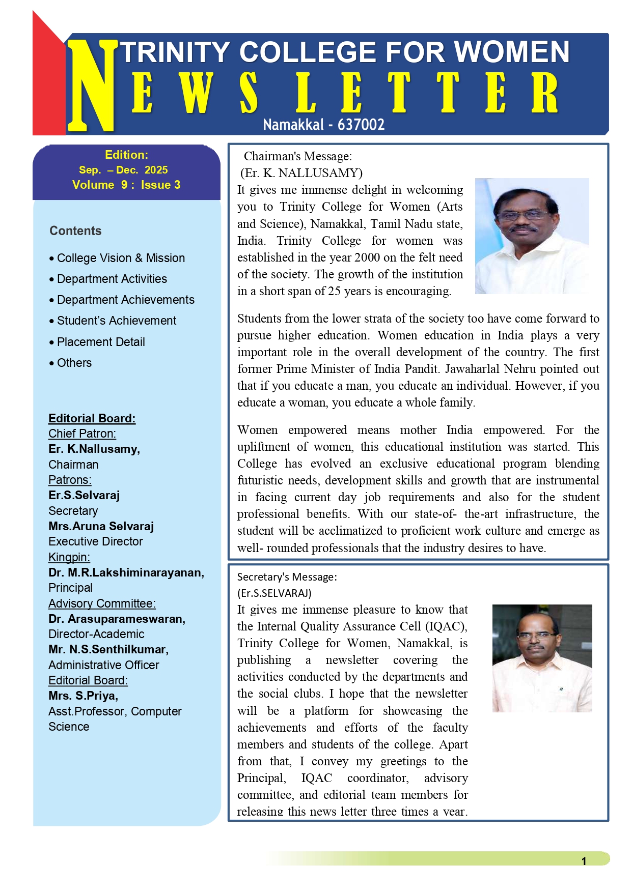 Er.K.Nallusamy, Trinity College for Women, Namakkal.