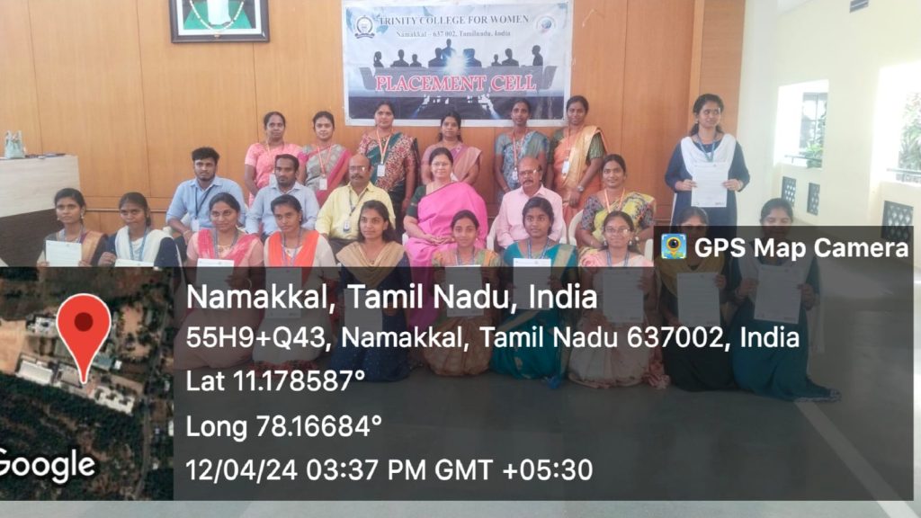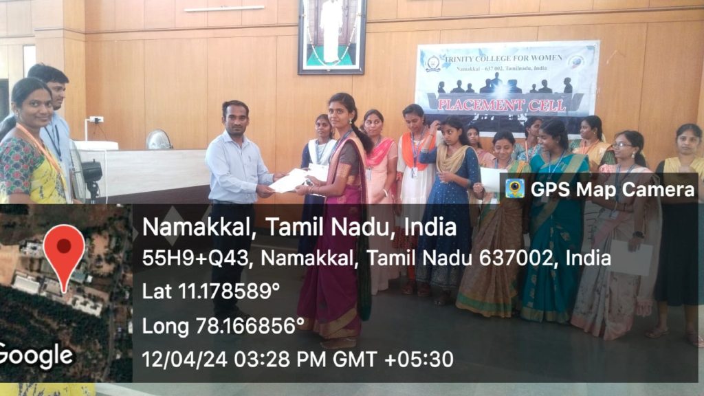 The Placement Cell, in support of the Naan Mudhalvan, Trinity College for Women, Namakkal, organized a campus placement drive on March 14, 2024, on the college campus. In this regard, 46 students have been selected for the firm of M/s. KKP Group of Companies, Namakkal in Phase 1. Finally, the following 11 students got their placement through this campus interview.
