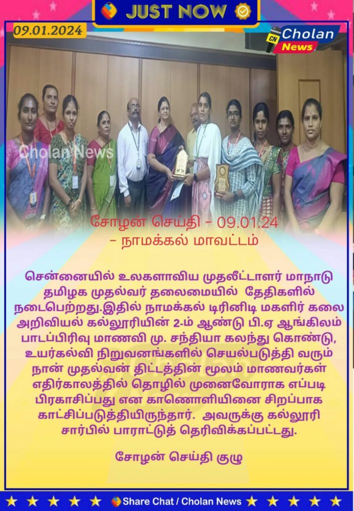 Best wishes to Ms. M. Sandhiya, second-year B.A., English