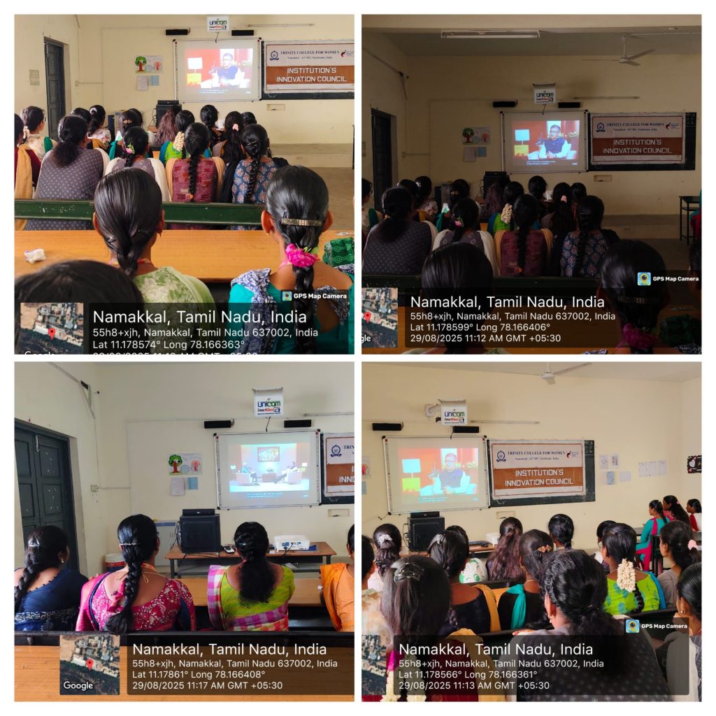 In this regard, on 29.08.2025, our college students as well as faculty members, Trinity College for Women, Namakkal, watched the YouTube Video on our college premises, related to the Innovation and Internship Programme (Rashtra Pratham / Celebrating Failures).