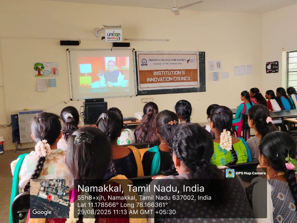 MOE’s Institution Council, Ministry of Education, Government of India, Institution’s Innovation Council,  Trinity College for Women, Namakkal (C-9496)organized a programme titled “Innovation and Entrepreneurship” Progamme on 29thAugust 2025.