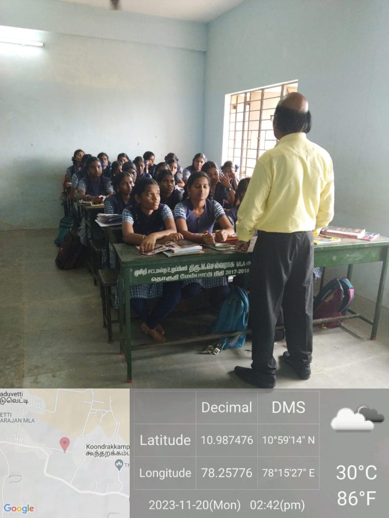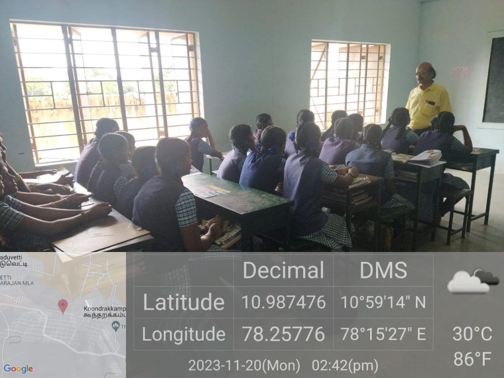 On behalf of the Institution Innovation Council, Trinity College for Women, Namakkal conducted an event titled “Higher Education Motivational Programme for Plus 2 Students” on November 20, 2023. It was held on the premises of the Government Higher Secondary School, Pappapatti, Thathiengarpet Block, Musiri Taluk, Tiruchirappalli District, the Government Higher Secondary School, Kolakudi, Thottiyam Block, Thottiyam Taluk, Tiruchirappalli District, and the Government Higher Secondary School, Thottiyam Block, Thottiyam Taluk, Tiruchirappalli District.