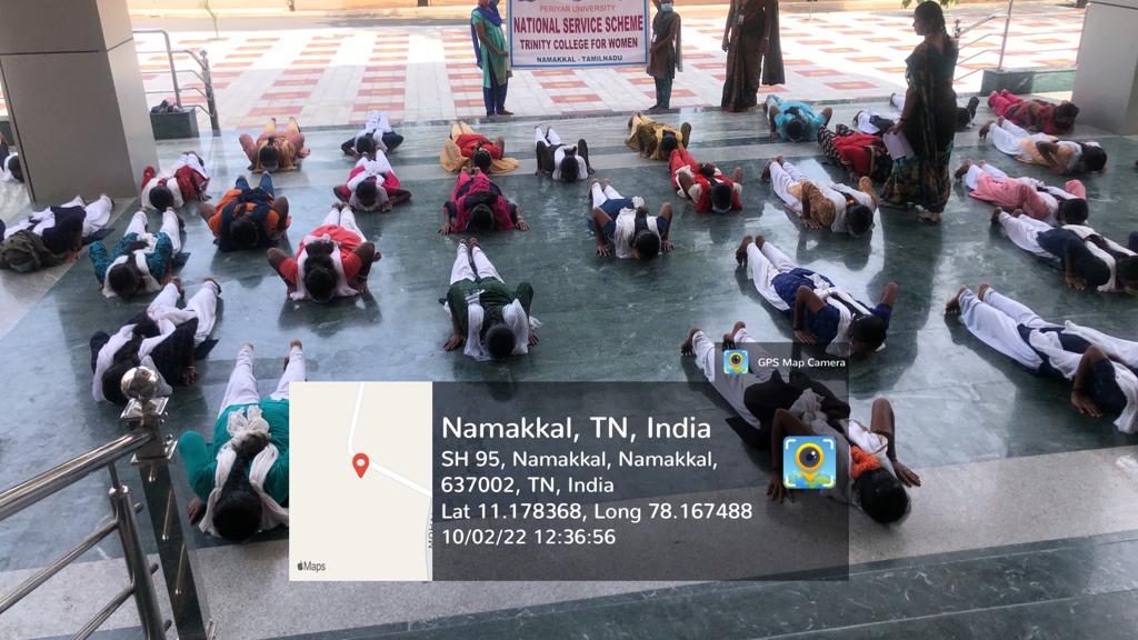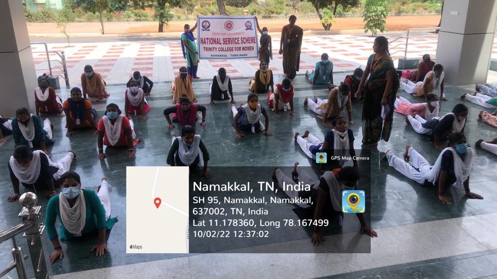 The Department of Physical Education in support of the National Service Scheme of Trinity College for Women, Namakkal organized an offline event in the title of ‘The Multiple Benefits of Surya Namaskar’ on 10.02.2022.