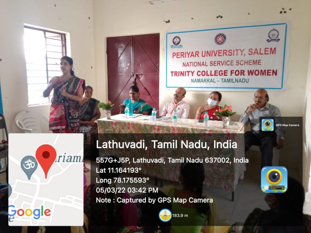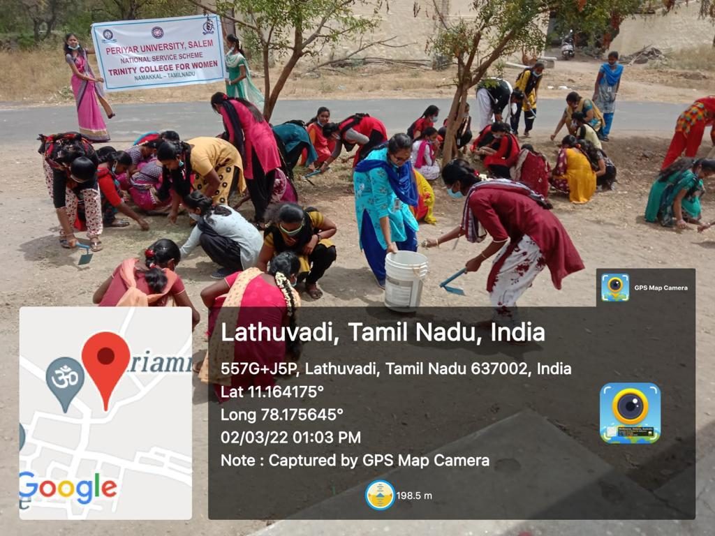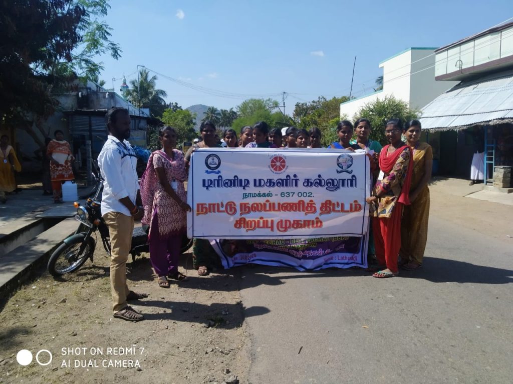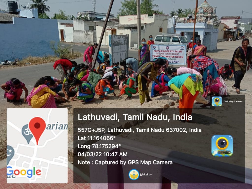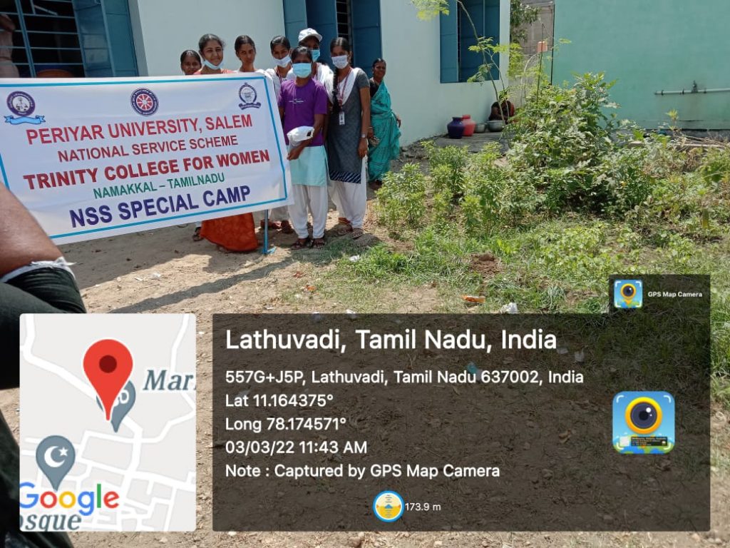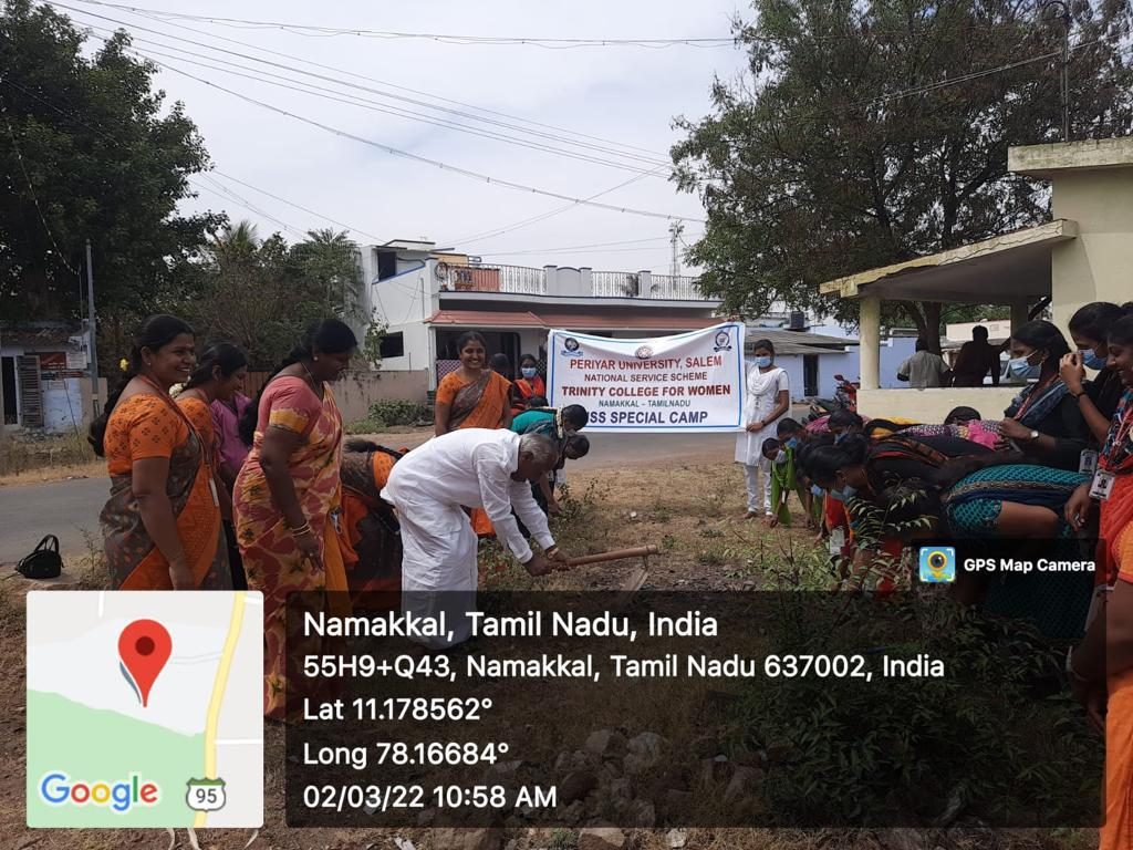 In support of National Service Scheme of Periyar University, Salem, NSS camp (நாட்டுநலப்பணித்திட்ட சிறப்பு முகாம்) of Trinity College for Women, Namakkal was held from 02nd March 2022 to 08th March 2022 in the villages of Ladduvadi and Nallayagoundampudur, Mohanur Block, Namakkal district.