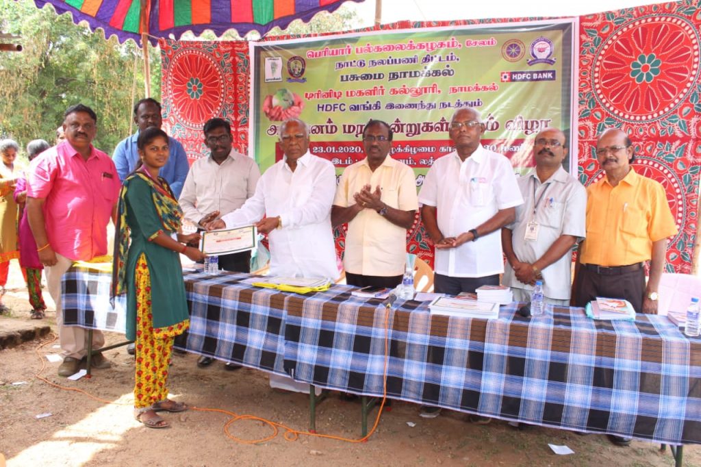 The National Service Scheme of Periyar University, Salem, The National Service Scheme of Trinity College for Women, Namakkal, Green (Pasumai) Namakkal and HDFC Bank, Namakkal branch jointly organized “Saplings Plantation Programme” in the name of “Sathyavanam” on 23rd January 2020 in Ladduvadi village, Namakkal district.