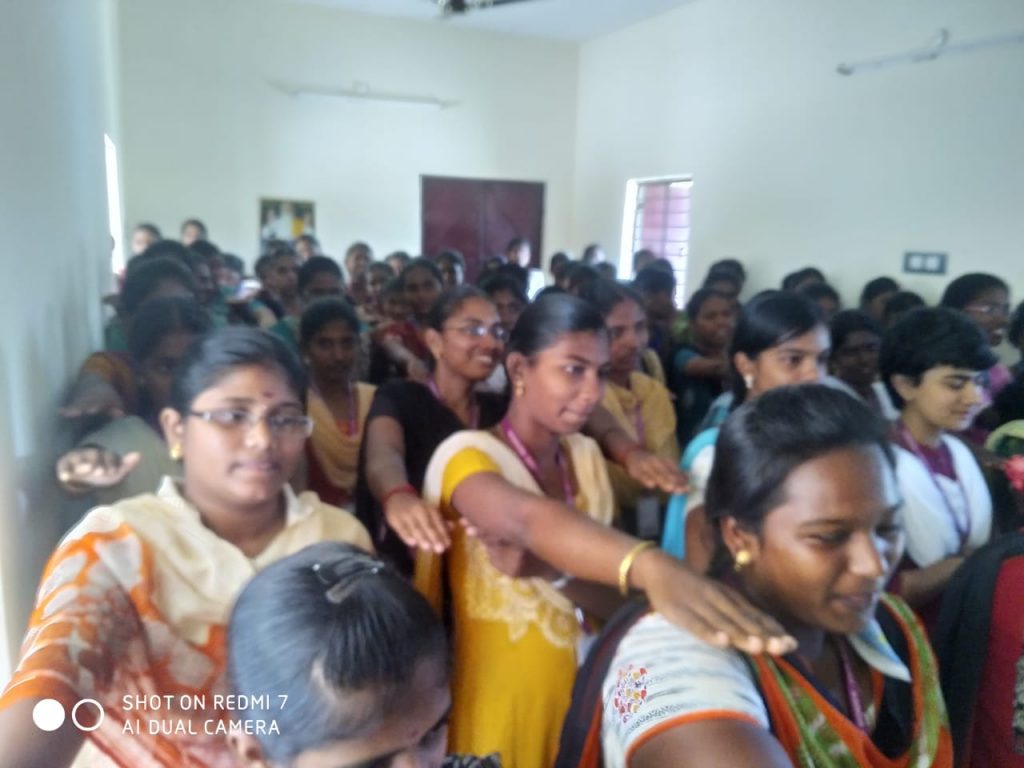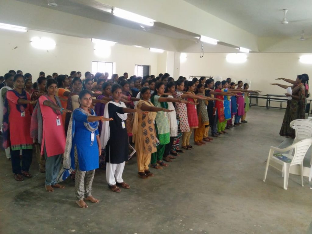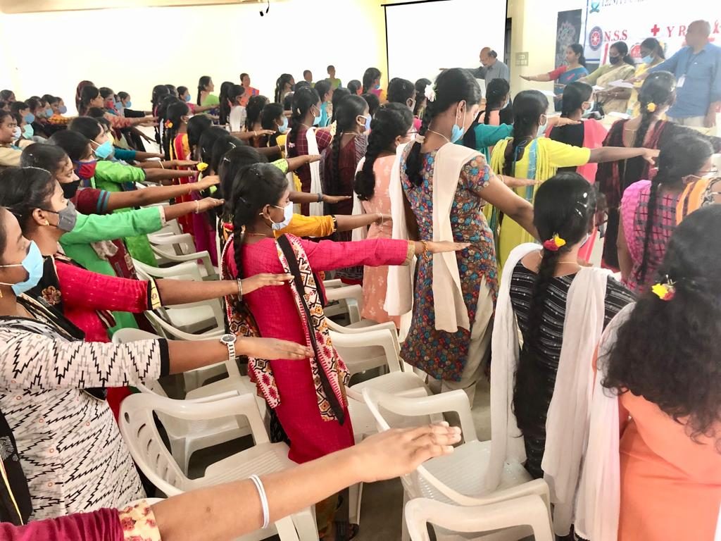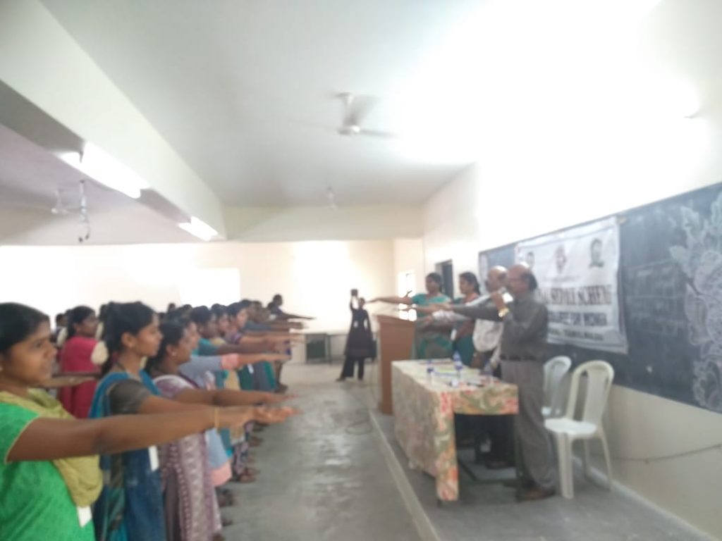 Mrs.V.Archana, Director of Physical Education was the resource person. She gave the exercise of 12 exercises of Surya Namaskar (Sun Salutation) for the benefit of NSS volunteers.