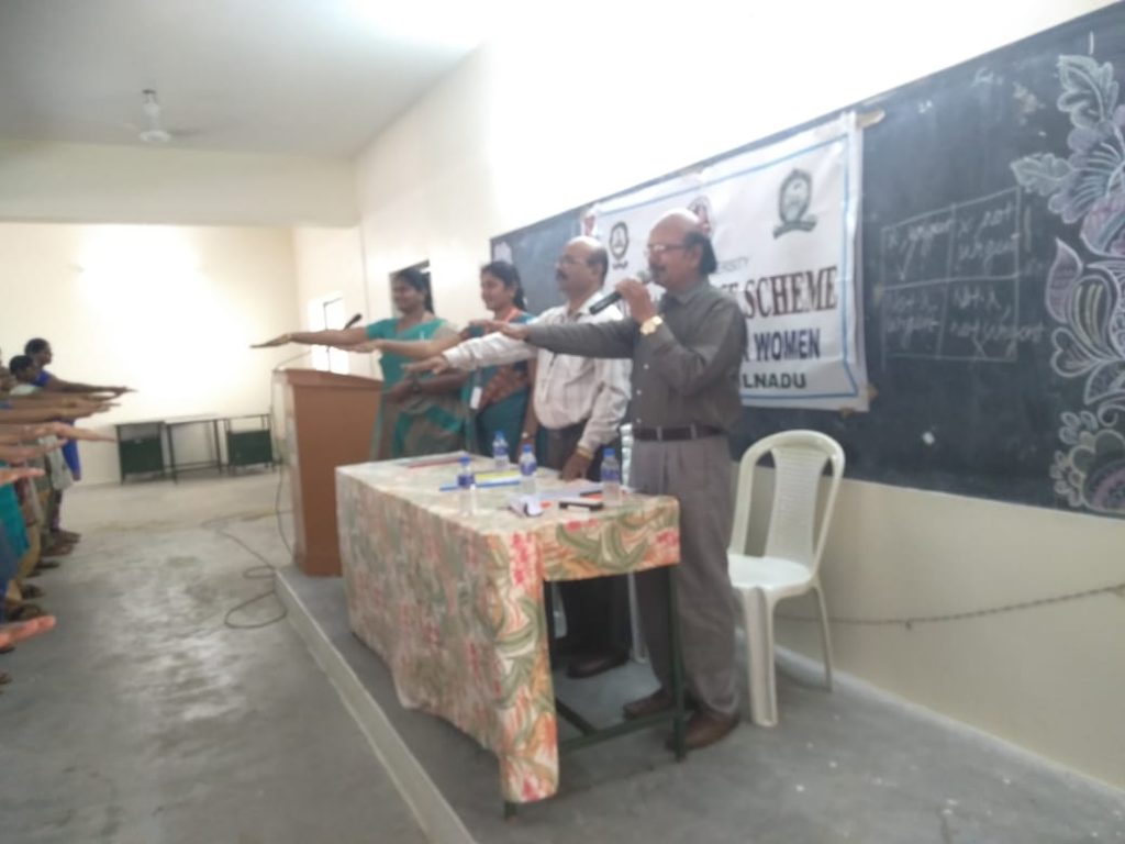 Mrs. S. Jayamathi, NSS Programme Officer, Unit 2/Assistant Professor in Tamil delivered the pledge and other participants followed. The pledge was created by means of the support of nation’s integration and uniformity among the diverse cultures of our country.