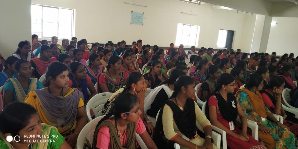 Dr. M. Malliga, M/s. Thangam Hospitals and Cancer Centre, Namakkal was the invited speaker. He spoke about the signs and symptoms of anemia and its dietary management. Mrs. T. Selvakumari, Patient Service Officer and the sub staff of Thangam Hospitals and Cancer Centre – Ms. M. Sangeetha, Ms. R Nandhini, Ms. A. Priyanka took part. The NSS Programme Officers Dr. M. Sasikala, Mrs. S. Jayamathi and the Director of Physical Education Mrs. V. Archana made arrangements. Dr. M.R. Lakshiminarayanan, Principal, Dr. Arasuparameswaran, Director – Academic and Mr. N.S. Senthilkumar, Administrative Officer offered their felicitation address. This event showed favourable in helping spread awareness and knowledge about iron deficiency anemia.