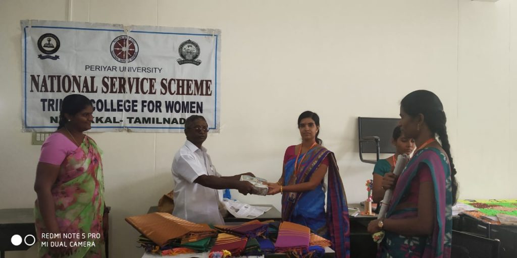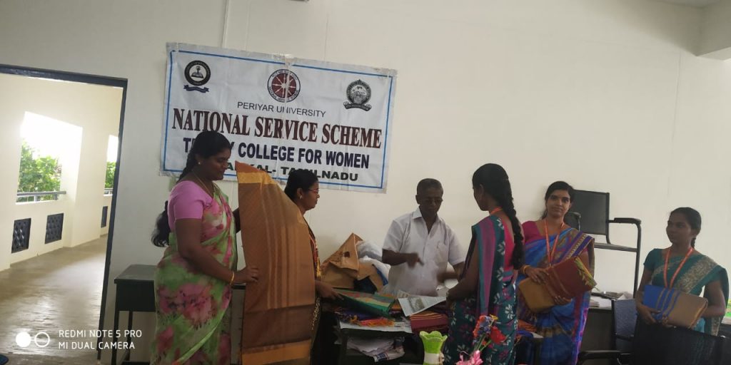 Owing to the livelihood of handloom weavers of M/s. TM-CH Handloom Weavers Cooperative Society, No – 4, Gandhiji Colony First Street, Gandhigram, Dindigul District Tamil Nadu state, our College National Service Scheme has conducted “Sari Exhibition cum Sale” on 09.04.2022. It was held in hall No 3.