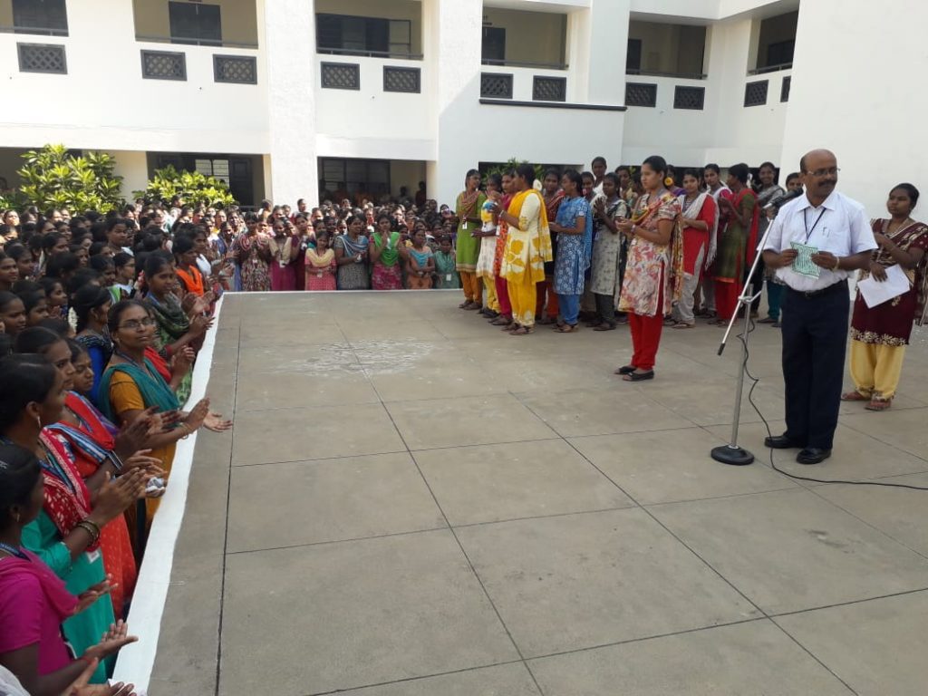 Dr. M. Sasikala, NSS Programme Officer, Unit – 1 spoke about the significance of girl child day. Mrs. S. Jayamathi, NSS Programme Officer Unit – 2 encourages girl students to equip themselves to face several challenges and difficulties and be talented to prove themselves in variou Mrs. R. Navamani, Senate Member, Periyar University, Salem/Assistant Professor in Computer Science suggested girls to work for national and serve the society. Ms. A. Dalini, I M.A., Tamil student spoke the women empowerment in India for the past 6 decades. Dr. Arasuparameswaran, Director – Academic, Mr. K. Manoharan, Director – Training and Placement, Mr. N.S. Senthilkumar, Administrative Officer, The HOD’s of our College Dr. T.K. Anuradha, Dr. R. Dhavamani, Mrs. K. Thangammal, Mrs. M. Sumathi, Mrs. N. Thangamani, Mrs. K. Valarmathi, Dr. G. Selvalakshmi, The Director of Physical Education Mrs. A. Nithya and the volunteers of NSS participated in this celebration.