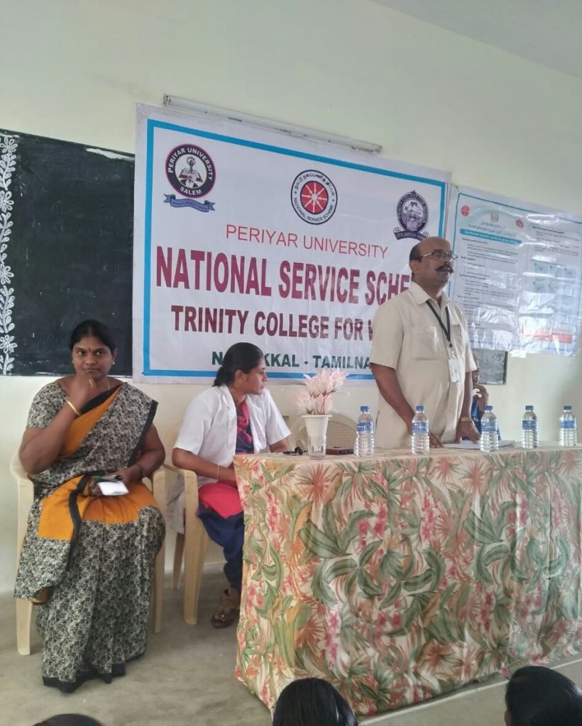 The NSS Programme Officers of Trinity College for Women Dr. M. Sasikala and Mrs. S. Jayamathi made arrangements in that NSS Camp.