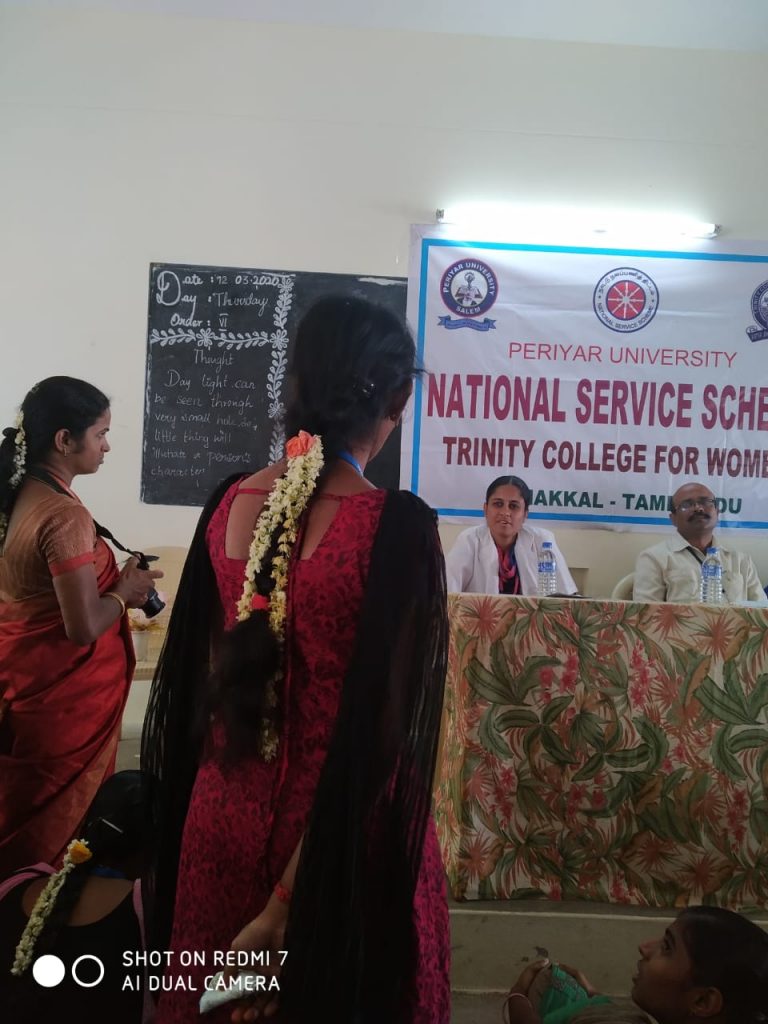 The volunteers of National Service Scheme of Trinity College for Women, Namakkal have enthusiastically completed their various social service activities in and around villages of Ladduvadi and Nallayagoundampudur.