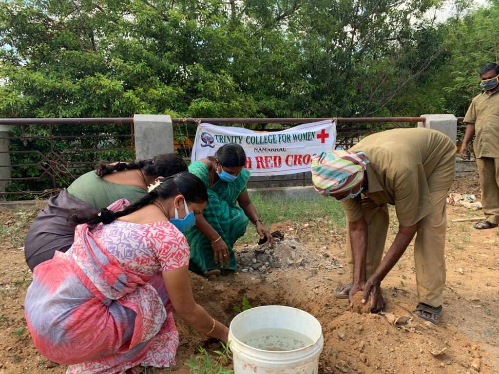 World Environment Day was celebrated on 5th June 2020 by the Tree Plantation Programme organized by the units of National Service Scheme, Youth Red Cross and Red Ribbon Club of Trinity College for Women, Namakkal. The programme was inaugurated by Dr M.R. Lakshiminarayanan, Principal of the College. Mrs. A. Nithya, Director of Physical Education welcomed the gathering. Dr. B. Vishnupriya, Assistant Professor in Tamil delivered the vote of thanks. This Tree Plantation Event was organized by the Co-ordinators Mr. N.S. Senthilkumar (RRC), Dr. R. Savithiri (YRC), Dr M. Sasikala (NSS) and Mrs. S. Jayamathi (NSS). Principal had explained about the trees and the importance of tree plantation for safeguarding our nature. Mr. P.K. Sengodan, Chairman, Er. K. Nallusamy, Secretary and Dr. Arasuparameswaran, Director – Academic of the Institution have conveyed their greetings to the organizations of NSS, YRC and RRC of Trinity College for Women for those kinds of social service. Dr N. Elamathi, AP/Computer Science, Dr. L. Tamilselvi, AP/Commerce, Mrs. M. Chitra, AP/Chemistry, Mrs. K. Mehala, AP/Physics, Ms. L. Deepika, AP/English and Mrs. C. Dhivya, AP/Mathematics were present.
