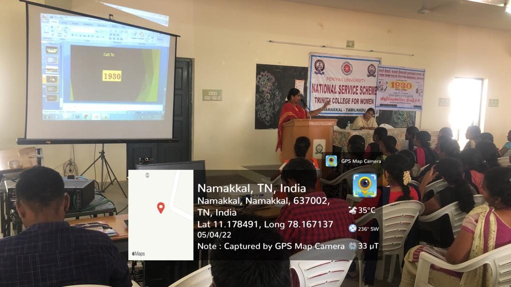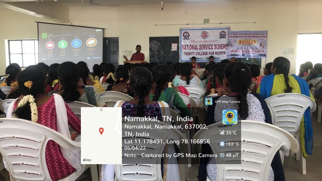 On behalf of NSS, Trinity College for Women, Namakkal conducted an awareness programme in the title of “A wrap up of cybercrimes in mobile applications, social media and banking sectors” on 05.04.2022.