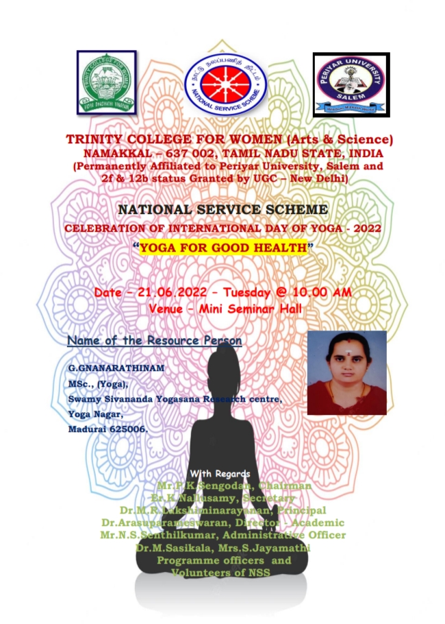International Yoga Day was celebrated by the National Service Scheme of Trinity College for Women, Namakkal on 21.06.2022.