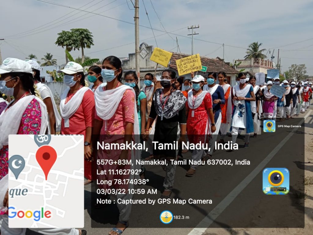 | 05.03.2022(Saturday) | Awareness Programme on Road Safety Rally – சாலை பாதுகாப்பு விழிப்புணர்வு பேரணிIt started from Government Primary Health Centre, Ladduvadi and ended in Panchayat Union Middle School, Ladduvadi. | Mrs. E. Oviya, Sub Inspector of Police, Mohanur talked in the topic of “Safety Awareness Programme for Rural Women”தலைப்பு கிராமப்புற பெண்களுக்கான பாதுகாப்பு விழிப்புணர்வு – சிறப்புரை ஈ ஓவியா காவல் உதவி ஆய்வாளர் – மோகனூர் – |