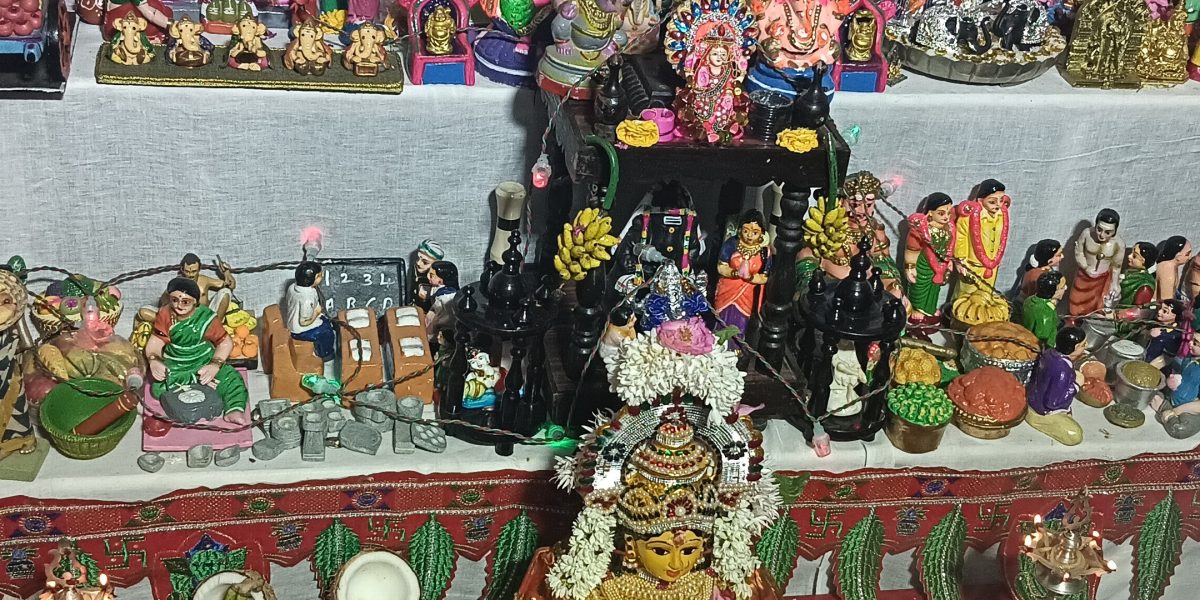 Navarathri Kolu is traditionally set up on the premises of Trinity Matric Higher Secondary School, Mohanur Road, Namakkal.