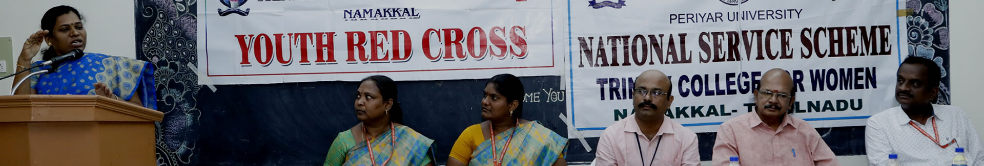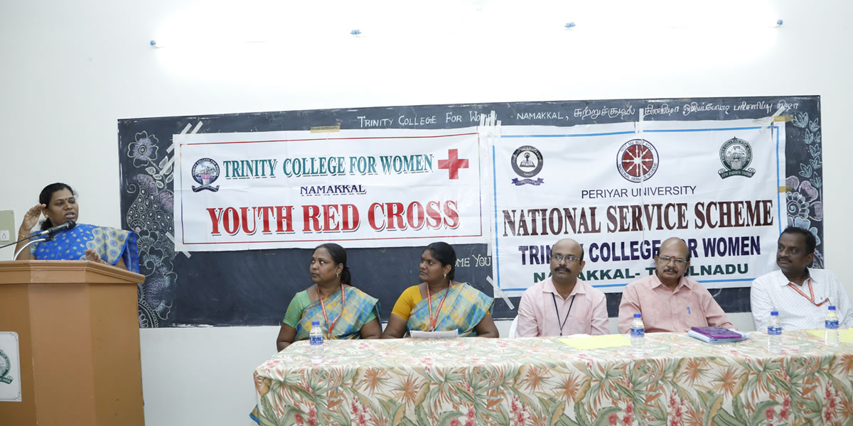 “Women of Excellency” Dr. M. Sasikala is greeted by Er. K. Nallusamy, Chairman; Er. S. Selvaraj, Secretary; Mrs. Aruna Selvaraj, Executive Director; Dr. M.R. Lakshiminarayanan, Principal; Dr. Arasuparameswaran, Director-Academic; the Administrative Officer, Mr. N.S. Senthilkumar and the faculty of Commerce, Mrs. G. Nithya, Dr. S. Devi, Mrs. M. Rajapadmavathi, Mrs. G. Kokila, Mrs. A. Rajeswari, Ms. L. Keerthi, Ms. P. Madhupriya and Ms. P. Dhanushiya, Trinity College for Women, Namakkal.