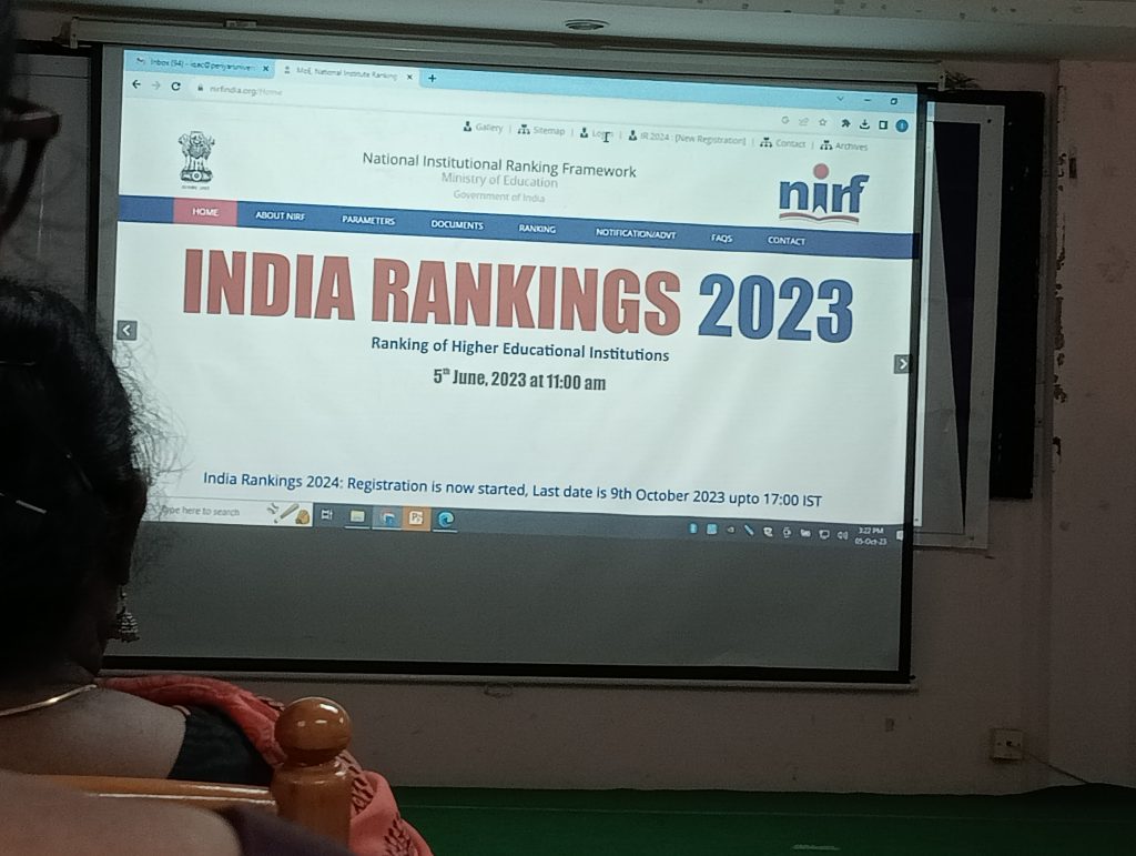 All the resource persons have explained the NIRF ranking parameters of higher education, like teaching, learning and resources, research and professional practices, graduate outcome, outreach, exclusivity, and perception. The NIRf ranking promotes healthy challenges among different institutions to enhance their functioning and other aspects so as to obtain a spot in this ranking. Also, the NIRF ranking helps students who are going to pursue undergraduate and postgraduate degrees in choosing the best college, as the resource persons pointed out.