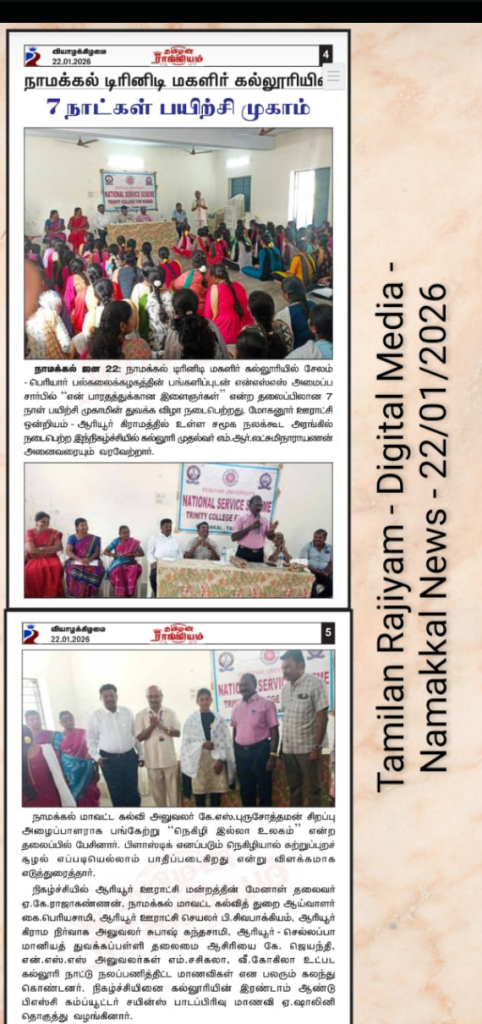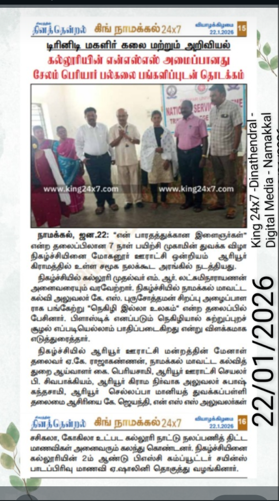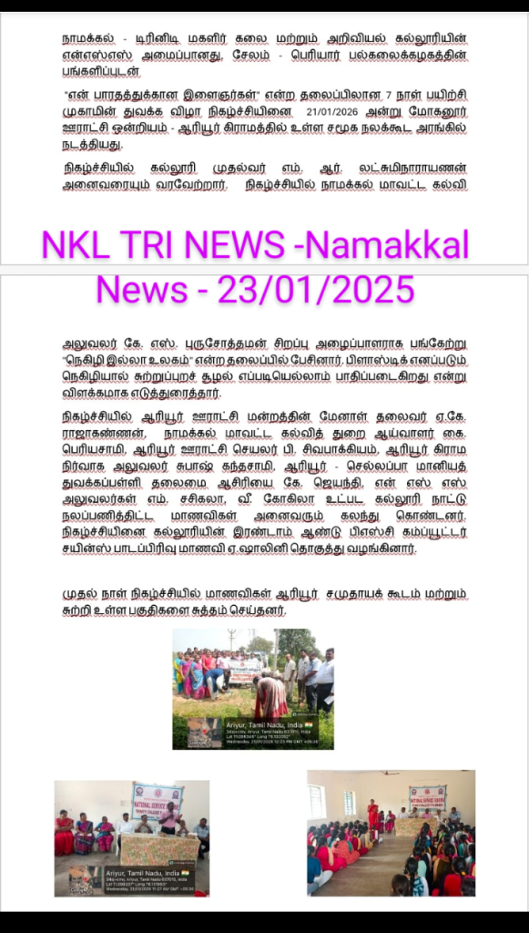 NSS SPECIAL CAMP REPORT AT THE VILLAGES OF ARIYUR & NEIKKARANPATTI