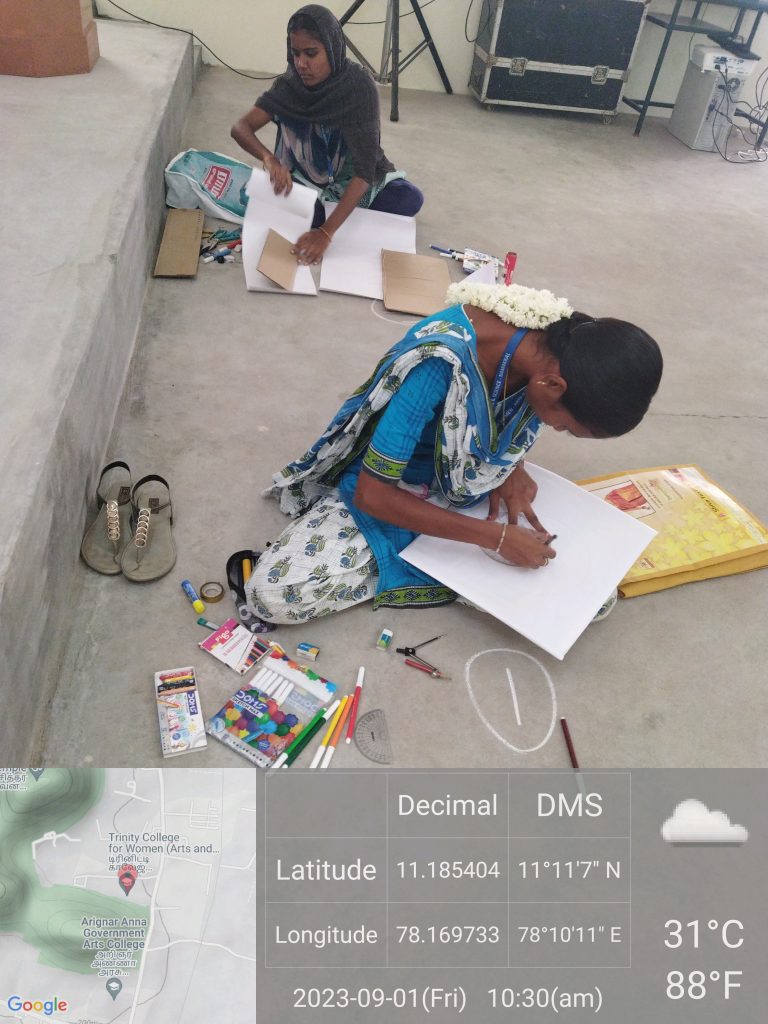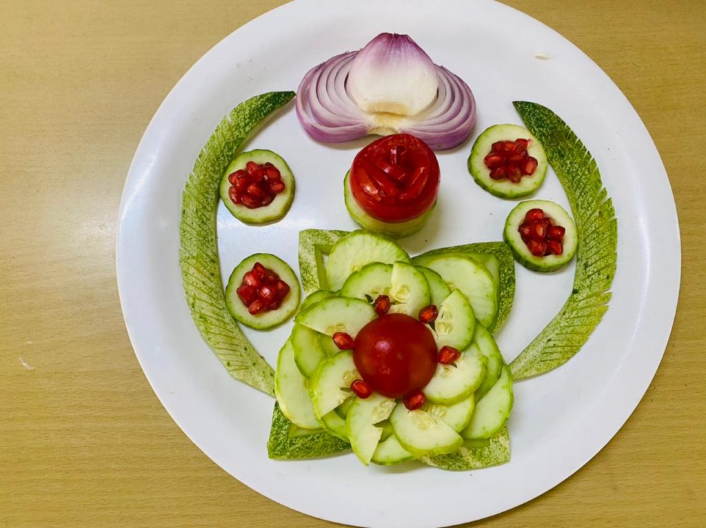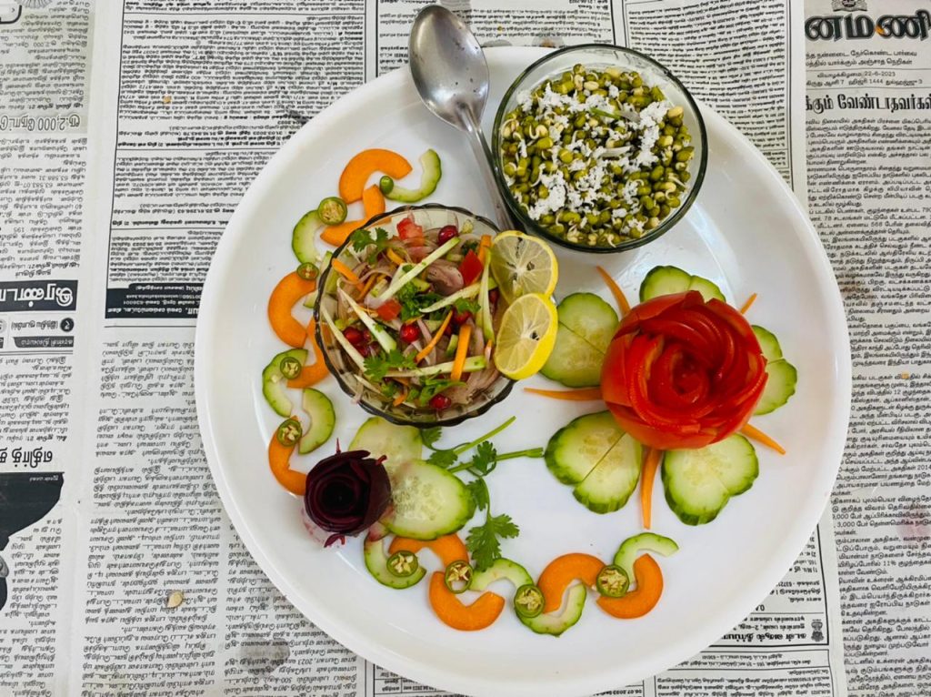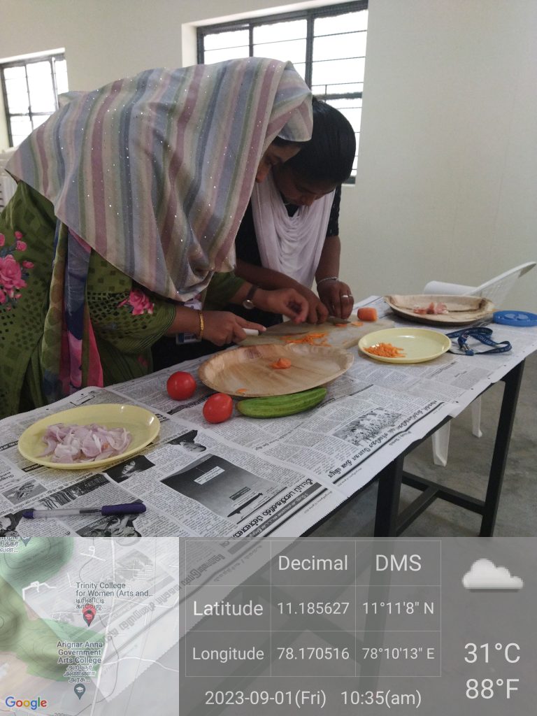 In consequence of the celebration of National Nutrition Week 2023, the departments of Nutrition and Dietetics and Costume Design and Fashion, Trinity College for Women, Namakkal, conducted a programme entitled “NUTRI MAX 2K23” on September 1, 2023. The competitions for salad decoration with fruits and vegetables and placard making (malnutrition) were held on the college campus. The following students have obtained the first three positions: