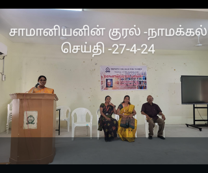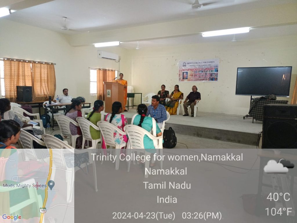 In this regard, Dr. Arasuparameswaran, Director, Academic, Trinity College for Women, Namakkal, gave an address to the students with words of appreciation, motivation, and encouragement, and shared how the reading of books in the college library.