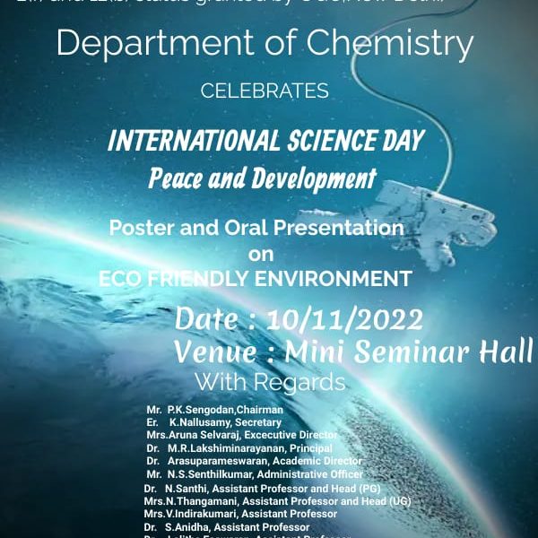 Observation of International Science Day (10.11.2022) – Organized by the Department of Chemistry