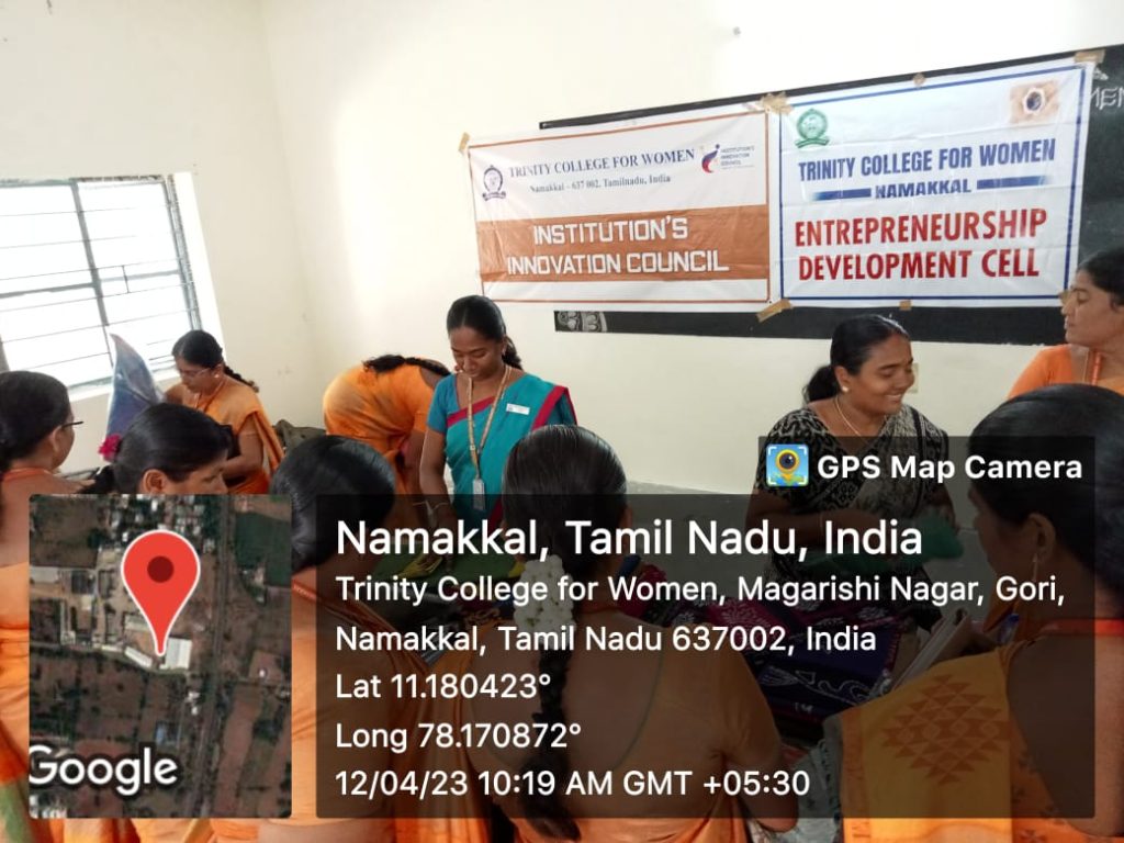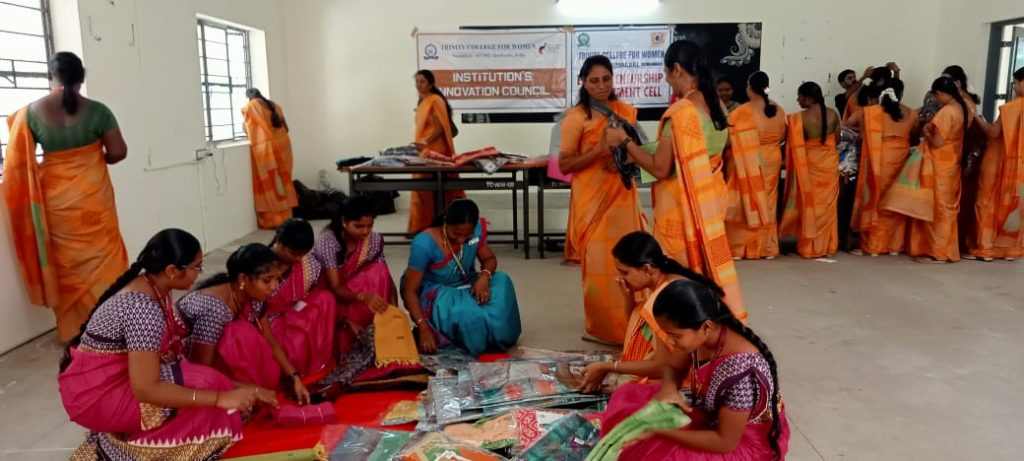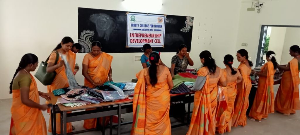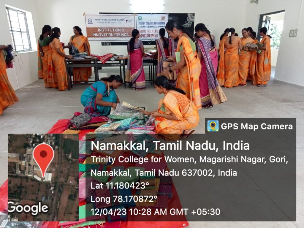 On account of Promotion of Student’s Entrepreneurship, The Entrepreneurship Development Cell in association with Institution’s Innovation Council of Trinity College for Women, Namakkal organized a programme entitled “Exhibition cum carnival of textile products” (To whip up an entrepreneur while studying in the College) on 12th April 2023.