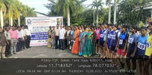 On account of silver jubilee celebrations of Periyar University, Salem, the programme on “Awareness rally on prevention of drug usage four district inter collegiate cross country race for women (2022-23)” was held on 15.09.2022. This event was organized by the department of Physical Education, Periyar University, Salem. Prof. Dr. R. Jagannathan, Honourable Vice-Chancellor of Periyar University, Salem inaugurated the rally. Dr. K. Venkatachalam, Director of Physical Education of the University spoke about the significance of awareness rally on prevention of drug usage. Many students of Arts and Science College belonging to the districts of Salem, Dharmapuri, Namakkal and Krishnagiri took part. In this regard, the following staff and students took part on behalf of our Trinity College for Women, Namakkal.
