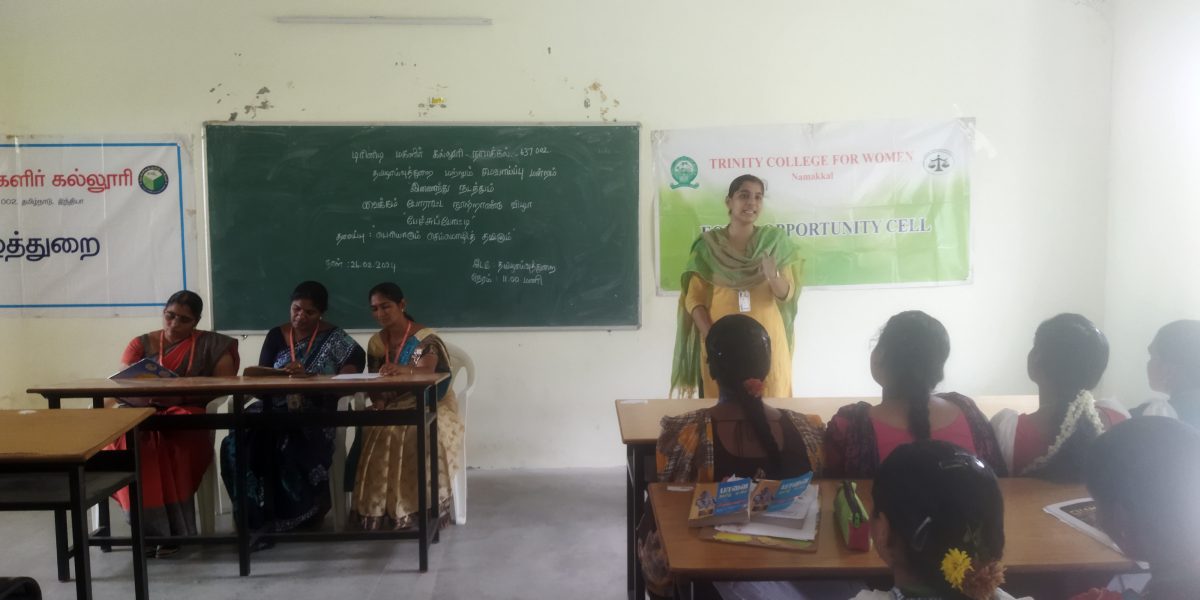 On account of the centenary celebrations of the Vaikom Struggle, the postgraduate and research department of Tamil as well as the Equal Opportunity Cell of Trinity College for Women, Namakkal conducted an elocution program titled “Periyar and Classical Language of Tamil” on February 26, 2024, on the college campus.