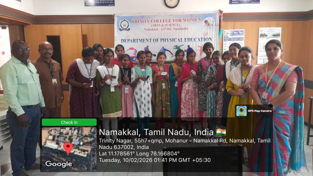 On account of the National Deworming Day, Deworming Tablets of Albentozone were distributed to the students of Trinity College for Women, Namakkal by NSS, YRC, RRC, TWF and UBA Cell with the support of the Department of Physical Education on 10th February 2026.