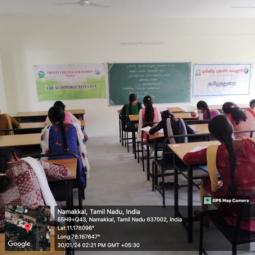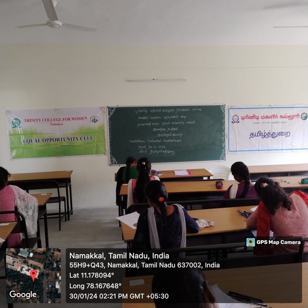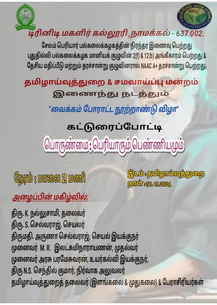 On account of the Vaikom Satyagraha Centenary Celebration, the postgraduate and research department of the Tamil and Equal Opportunity Cell, Trinity College for Women, Namakkal, jointly conducted the essay writing competition entitled “Periyar & Feminism” on January 30, 2024.