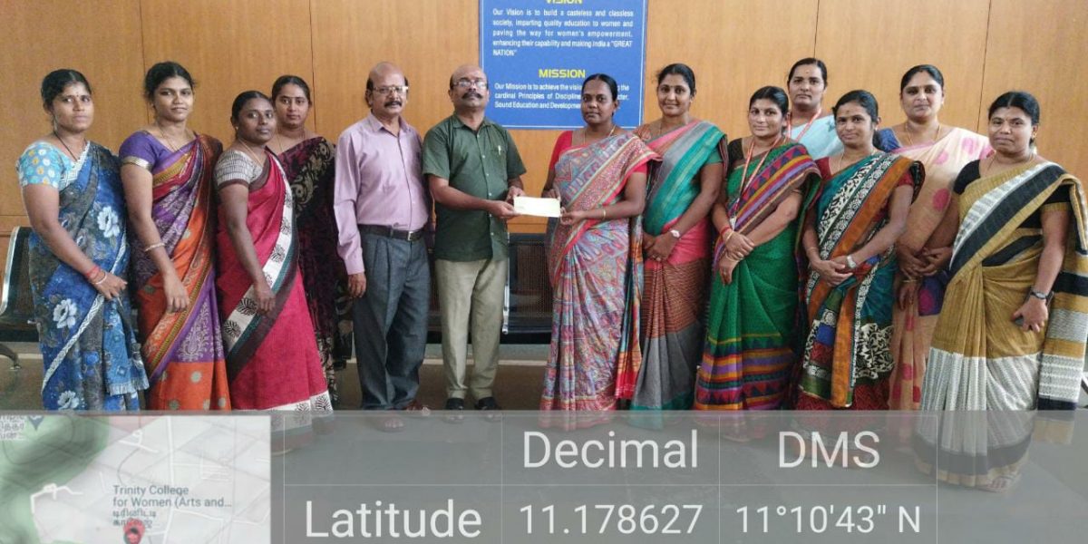 The members of Alumni of Trinity College for Women gave out a cheque to the Principal Dr. M.R. Lakshiminarayanan on that day.