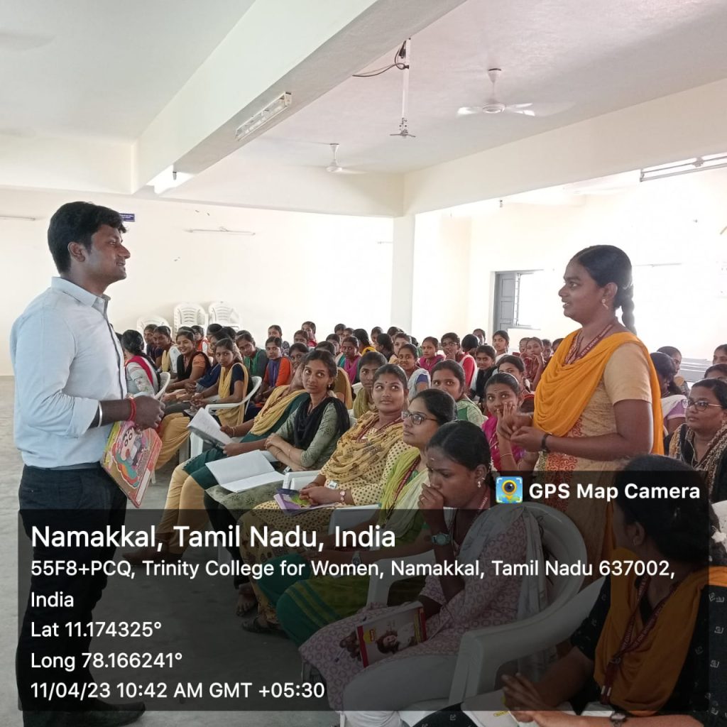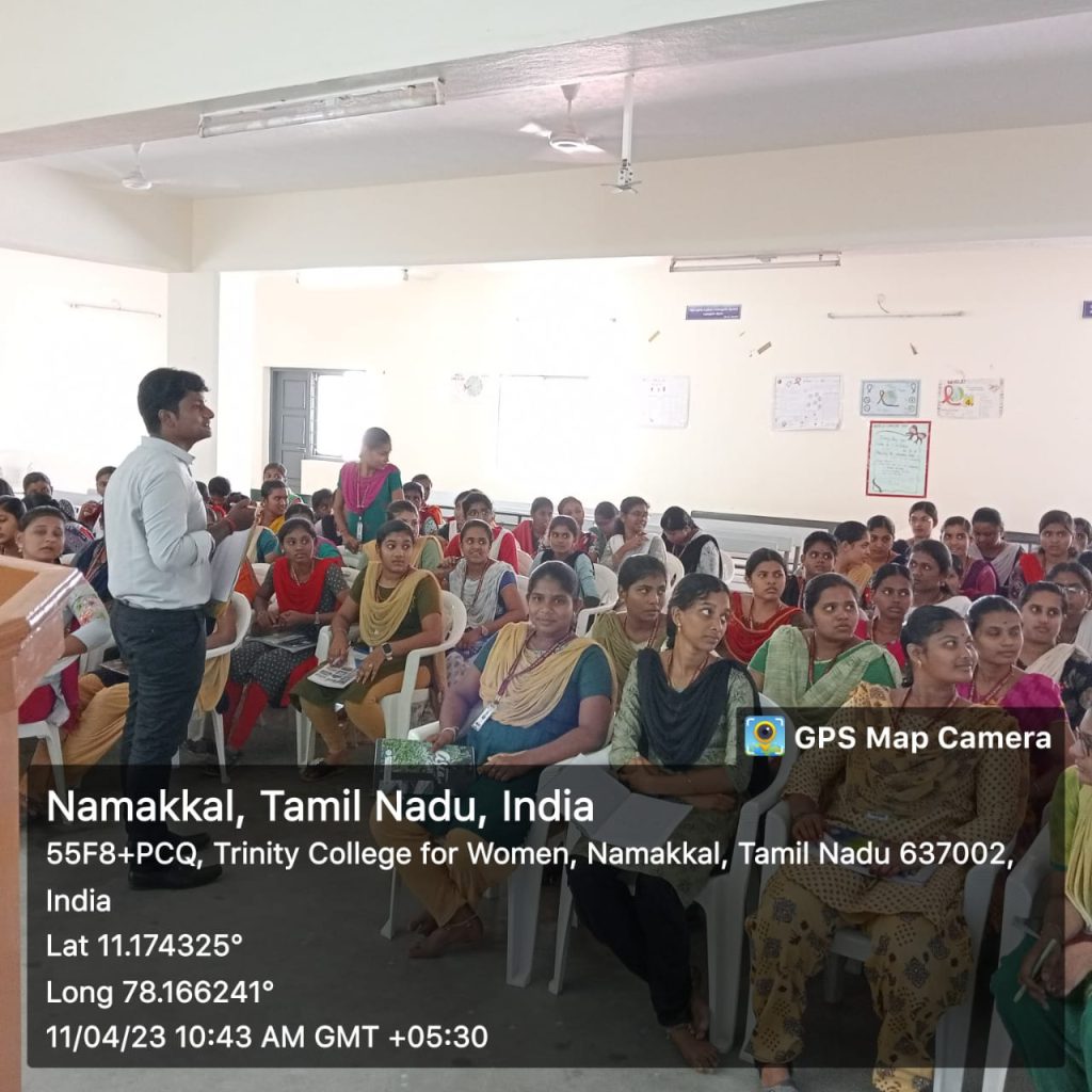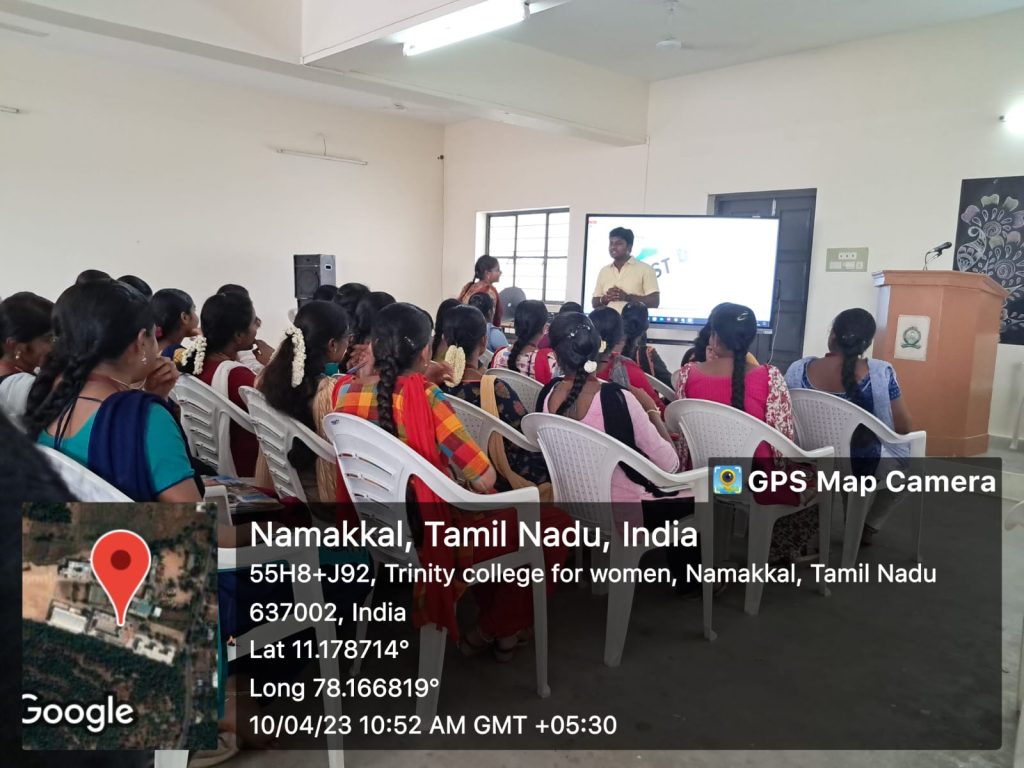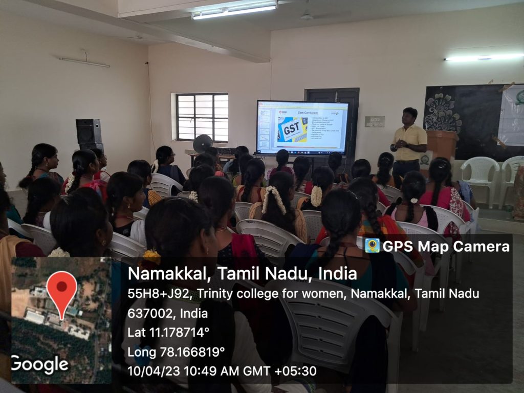 On behalf of Naan Mudhalvan Scheme, Trinity College for Women, Namakkal organized a two day programme in the title of “Income Tax, GST and Tally” on 10.04.2023 and 11.04.2023. It was held in the premises of the mini seminar hall of the College.